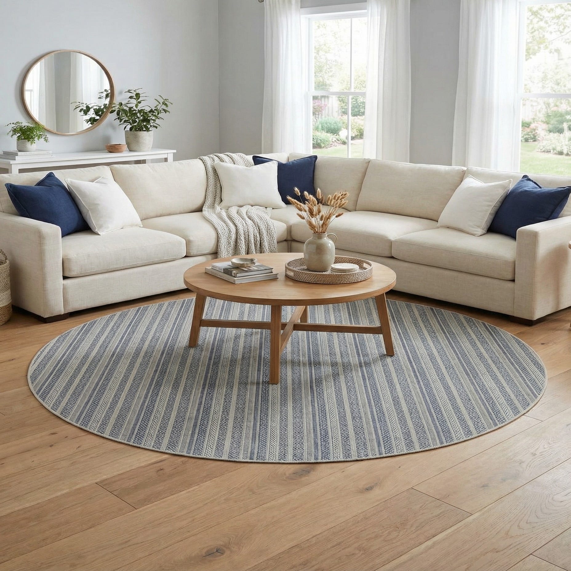 10' x 10' Washable Striped Indoor / Outdoor Round Rug