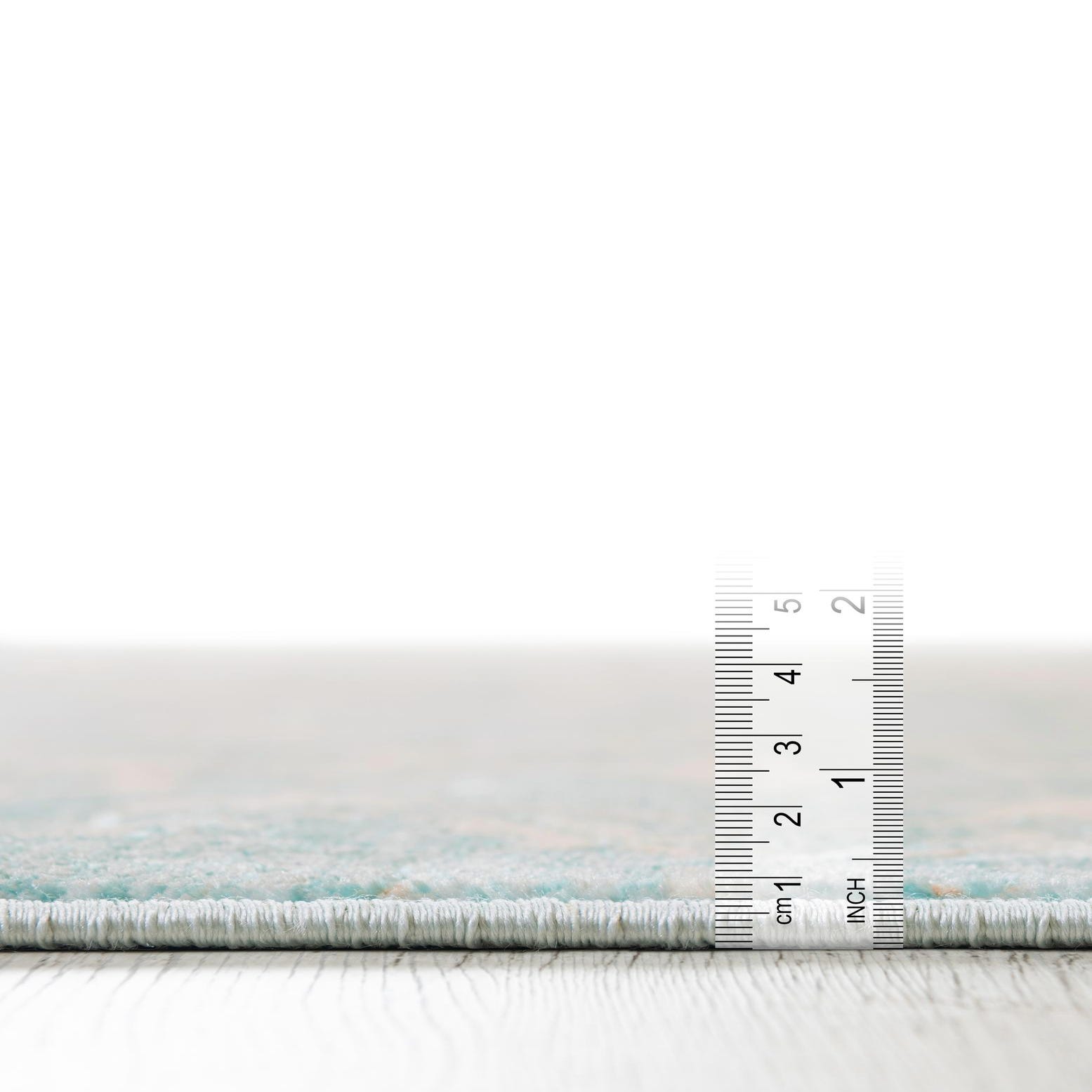 Primary color is Light Blue. Colors in this rug include: Light Blue, Ivory.