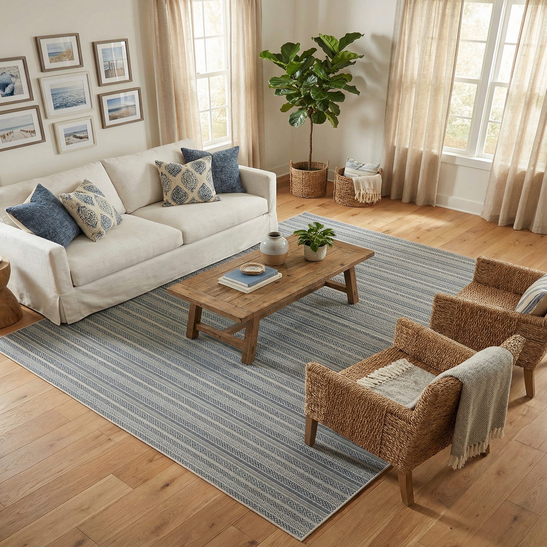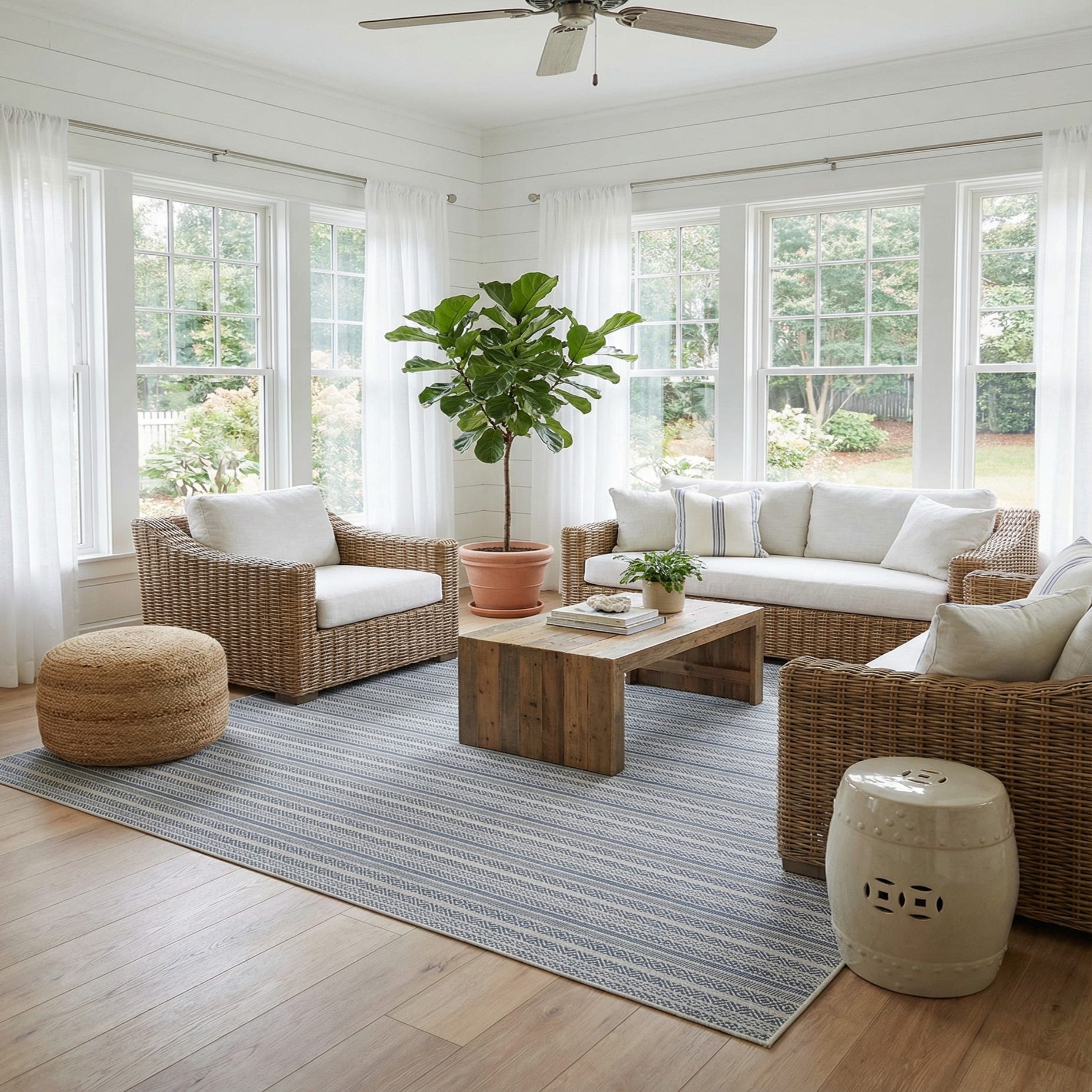 10' x 10' Washable Striped Indoor / Outdoor Square Rug