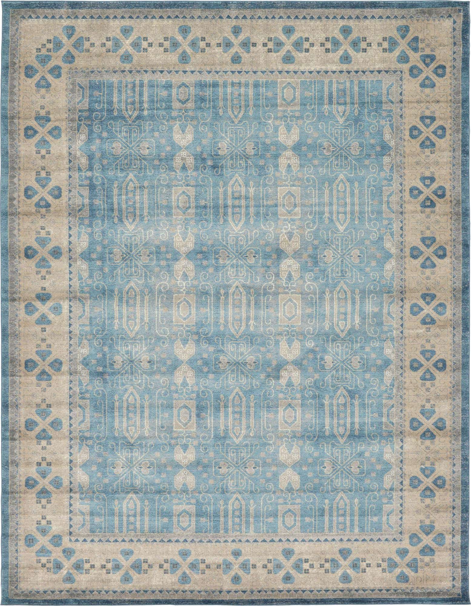 Primary color is Light Blue. Colors in this rug include: Light Blue, Gray, Ivory.