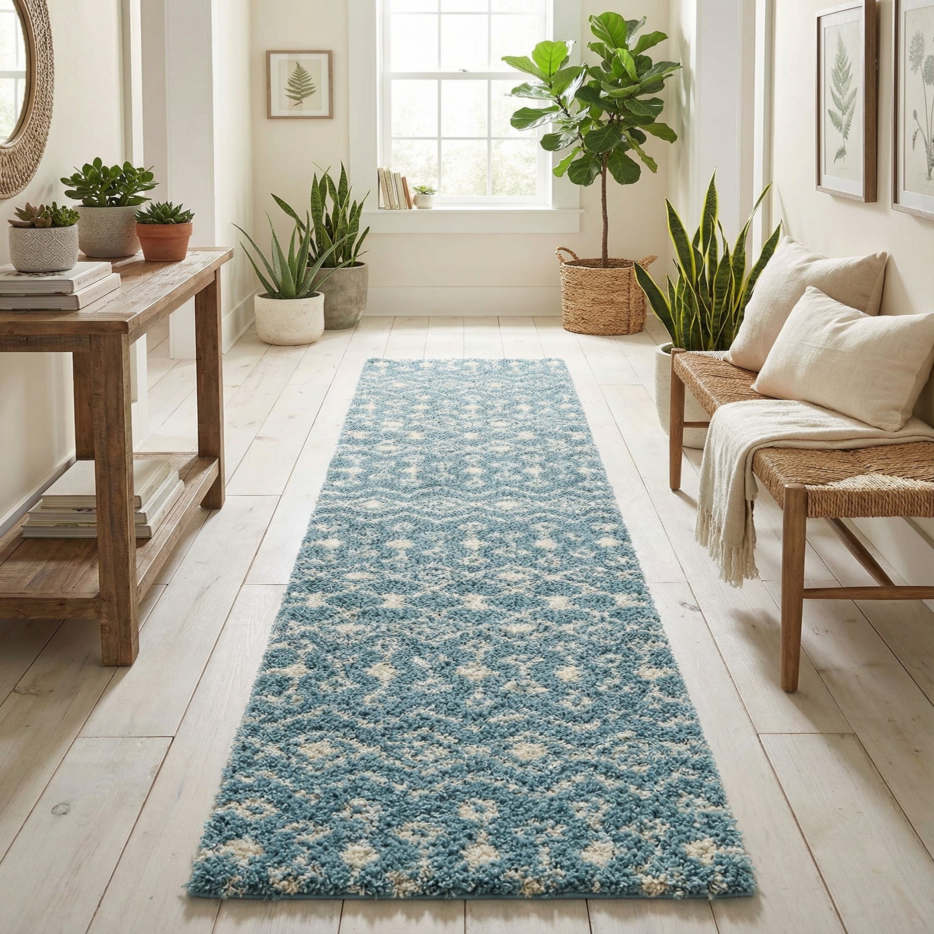 2' 7 x 12' Moroccan Trellis Shag Runner Rug