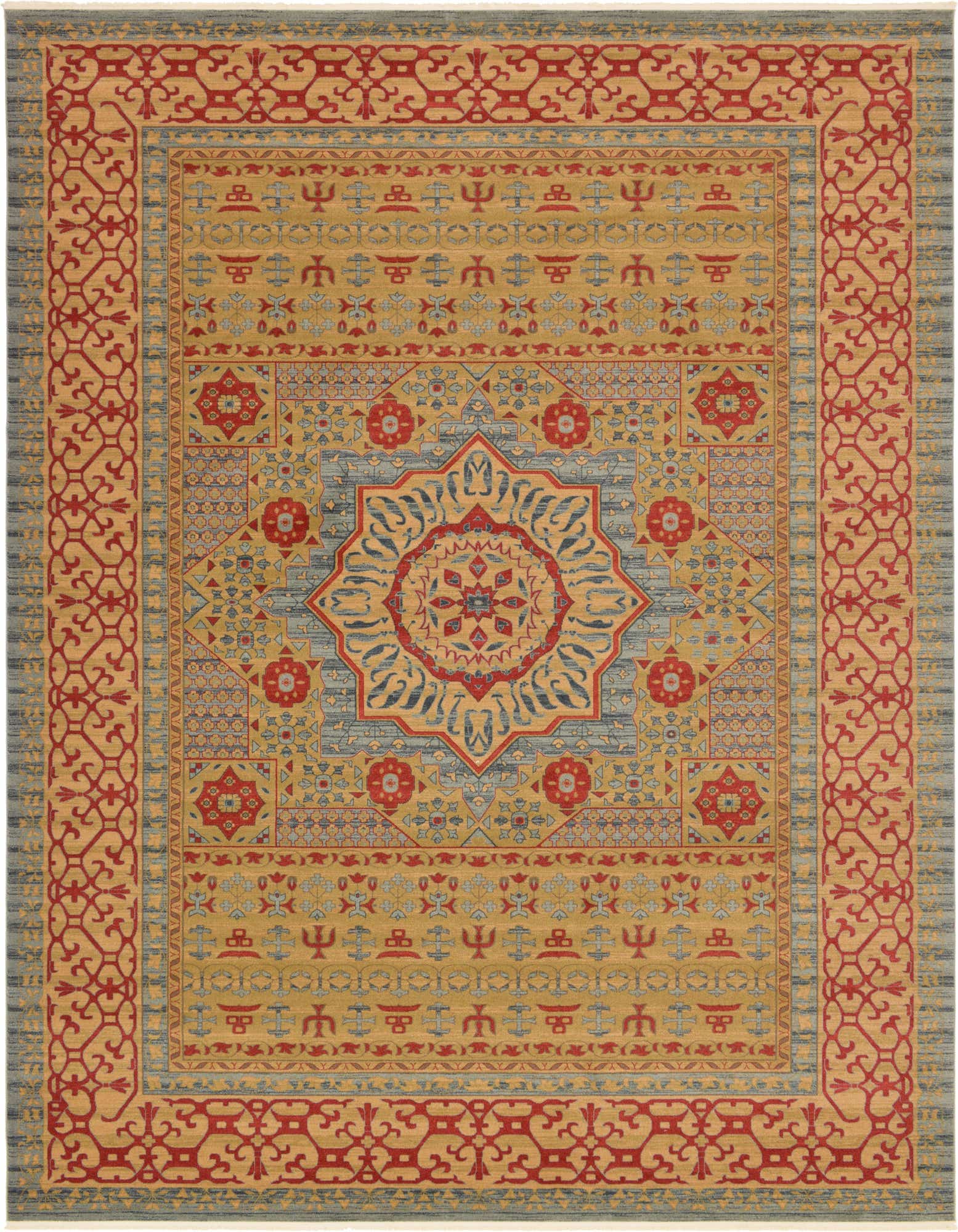 Primary color is Light Blue. Colors in this rug include: Light Blue, Light Brown, Light Green, Red, Navy Blue.