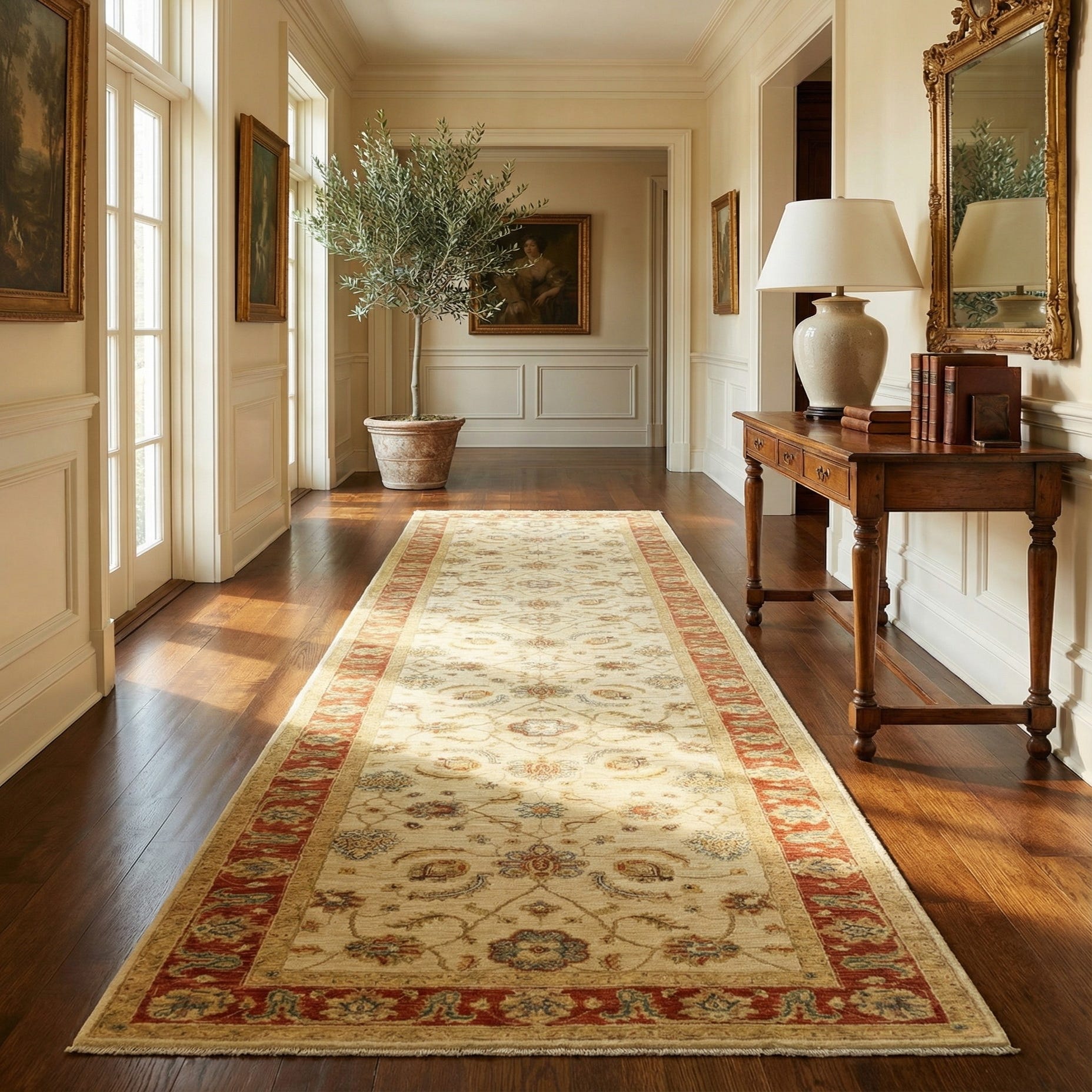 Detail image of 3' 10 x 17' 6  Hand Knotted Peshawar Ziegler Runner Rug