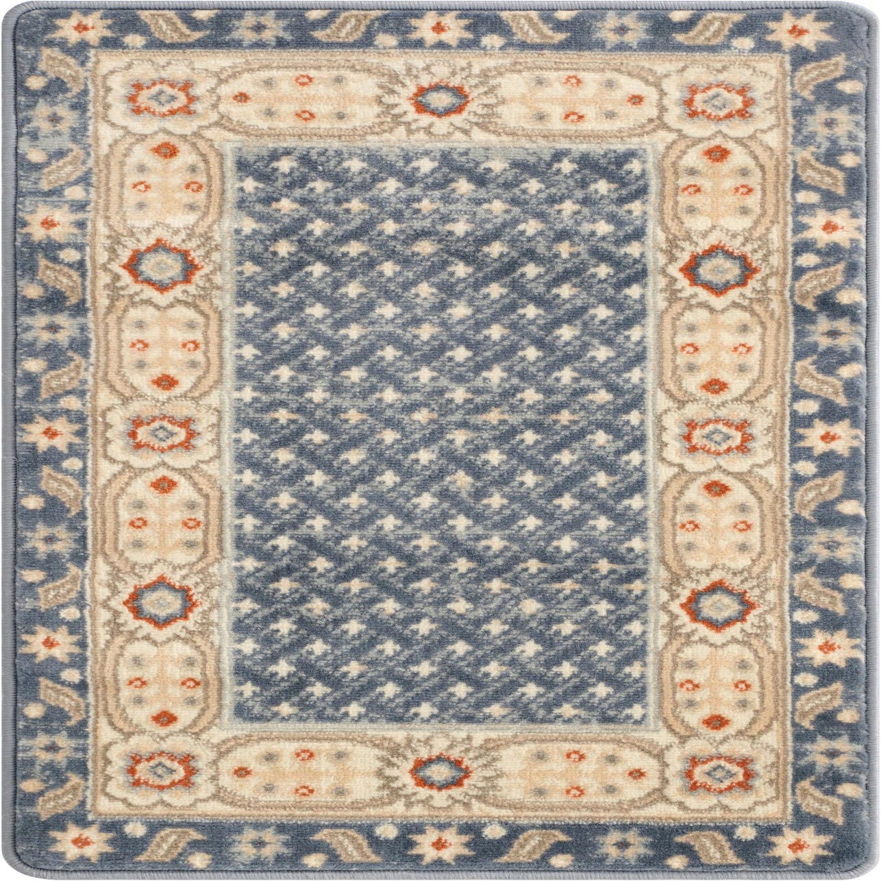 Primary color is Light Blue. Colors in this rug include: Light Blue, Gray, Ivory, Terracotta.