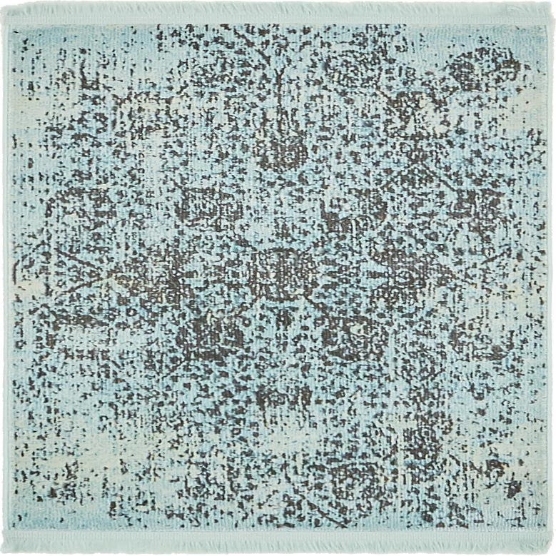 Primary color is Light Blue. Colors in this rug include: Light Blue, Brown, Ivory, Turquoise.