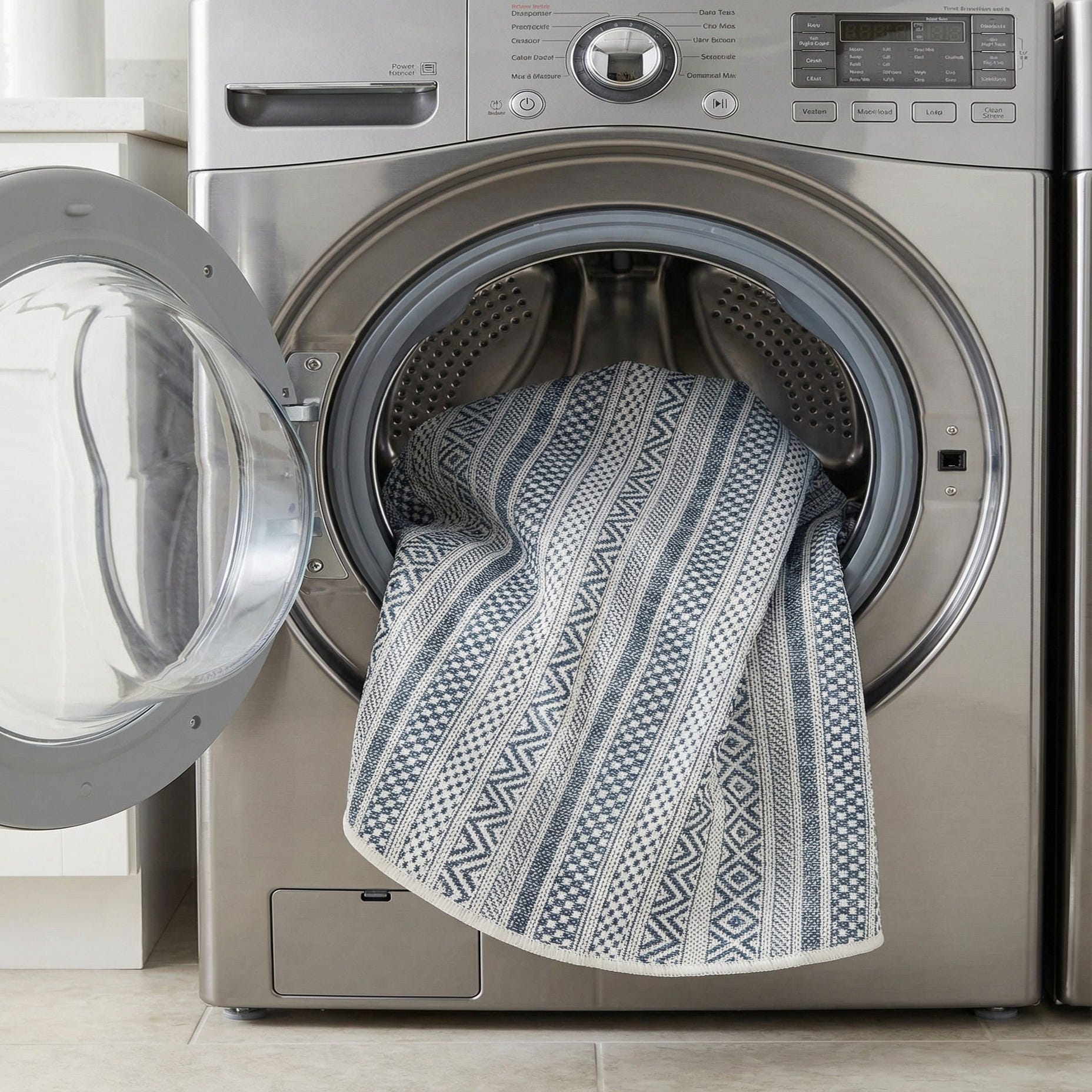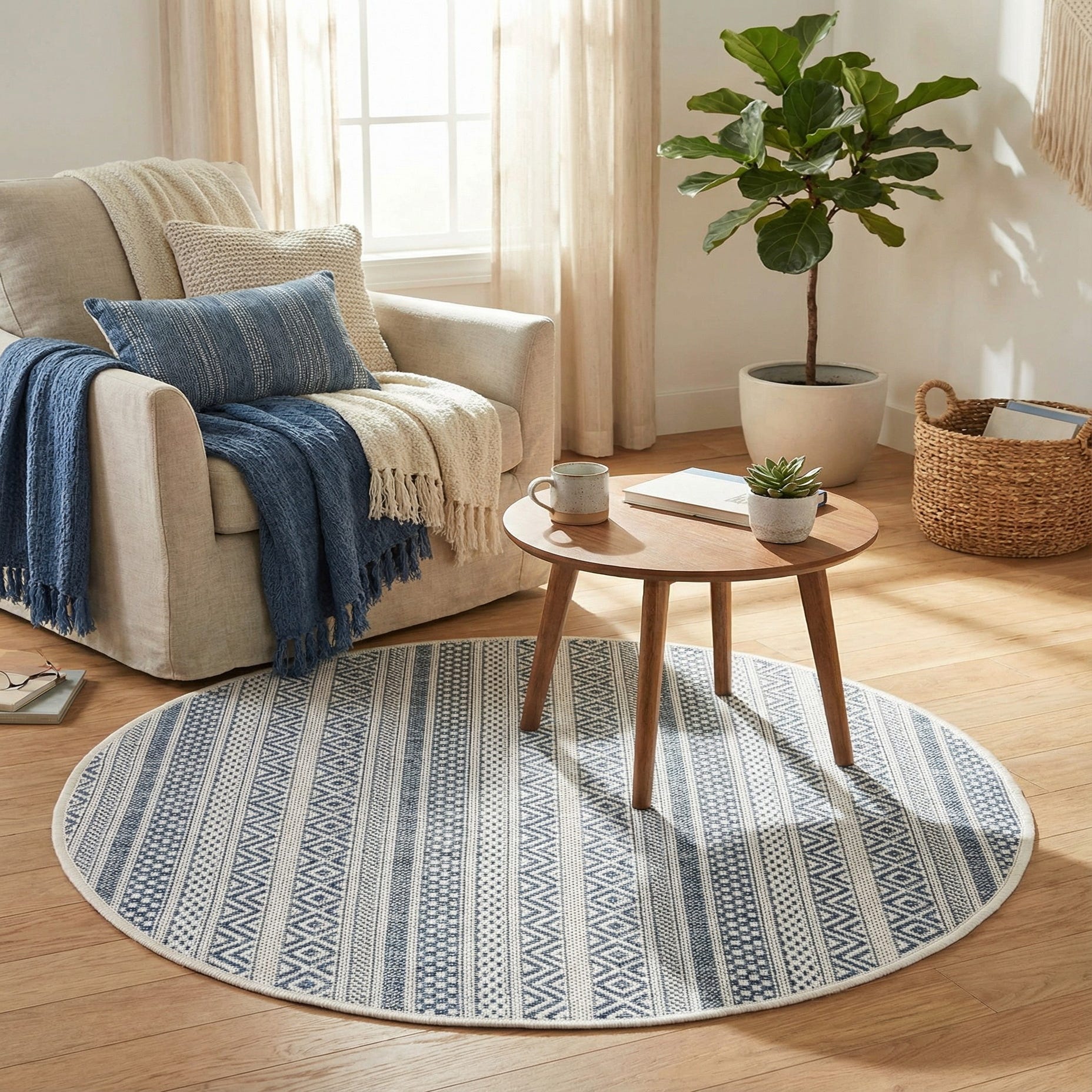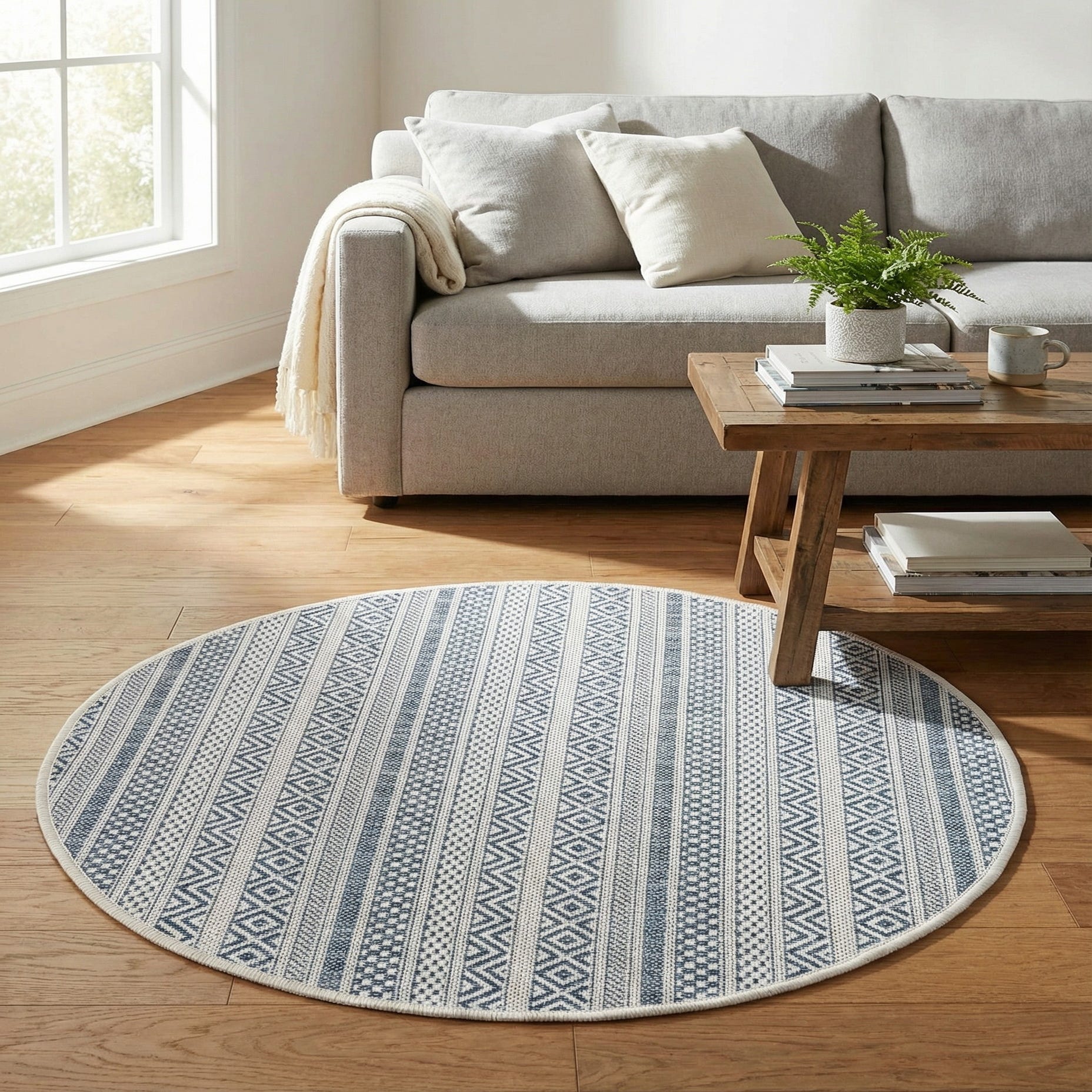 3' x 3' Washable Striped Indoor / Outdoor Round Rug