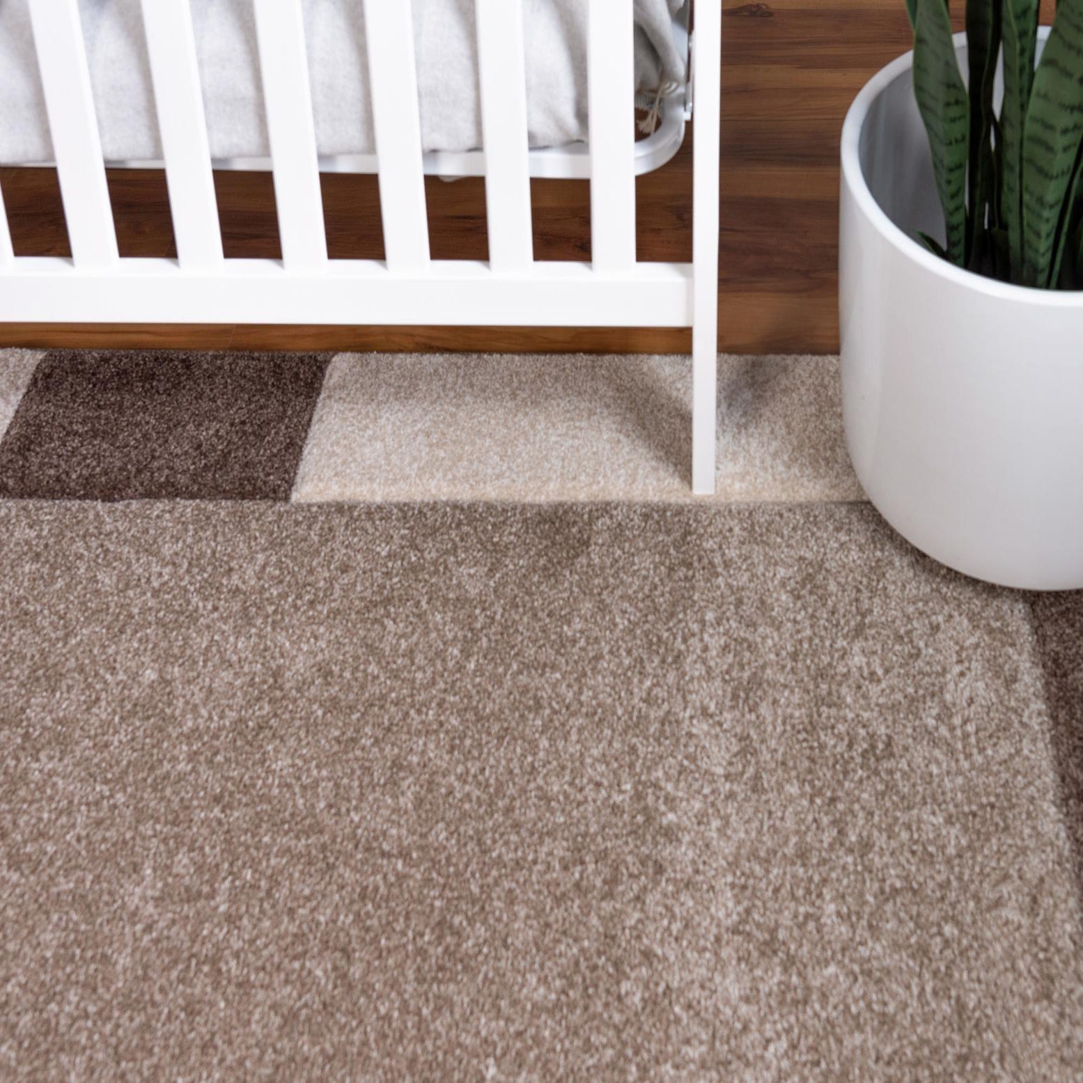 Primary color is Light Blue. Colors in this rug include: Light Blue, Brown, Ivory.