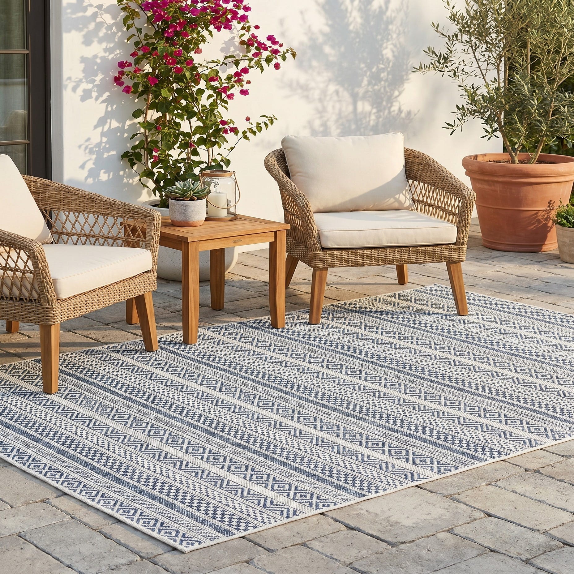 I bought these rugs to brighten up my patio they arrived within a few days and look amazing! Easy to clean and durable.