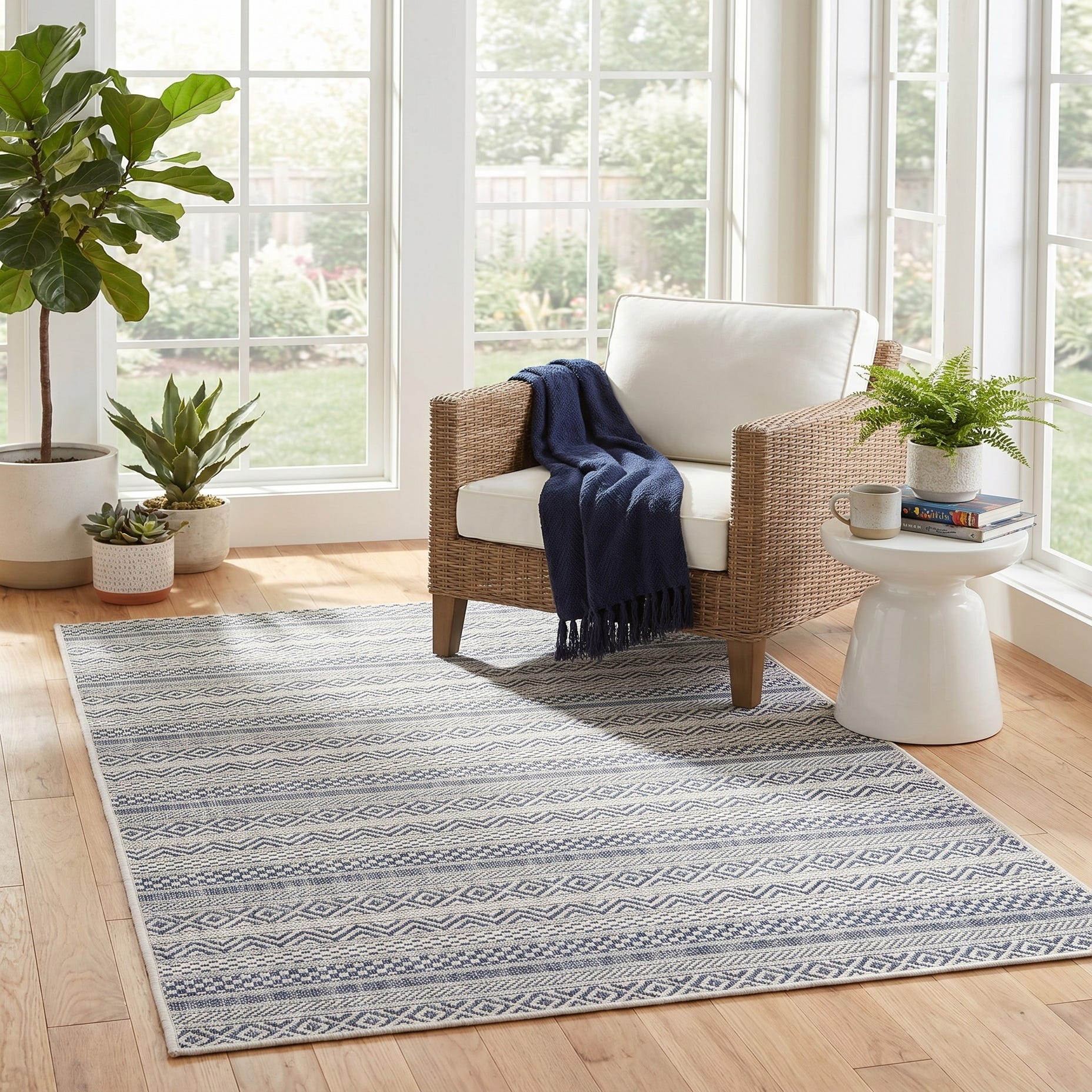 I bought this rug for my balcony and it’s transformed the space. I don’t have to worry about the rug if it rains- it’s very good quality. I’m very happy with this purchase!
