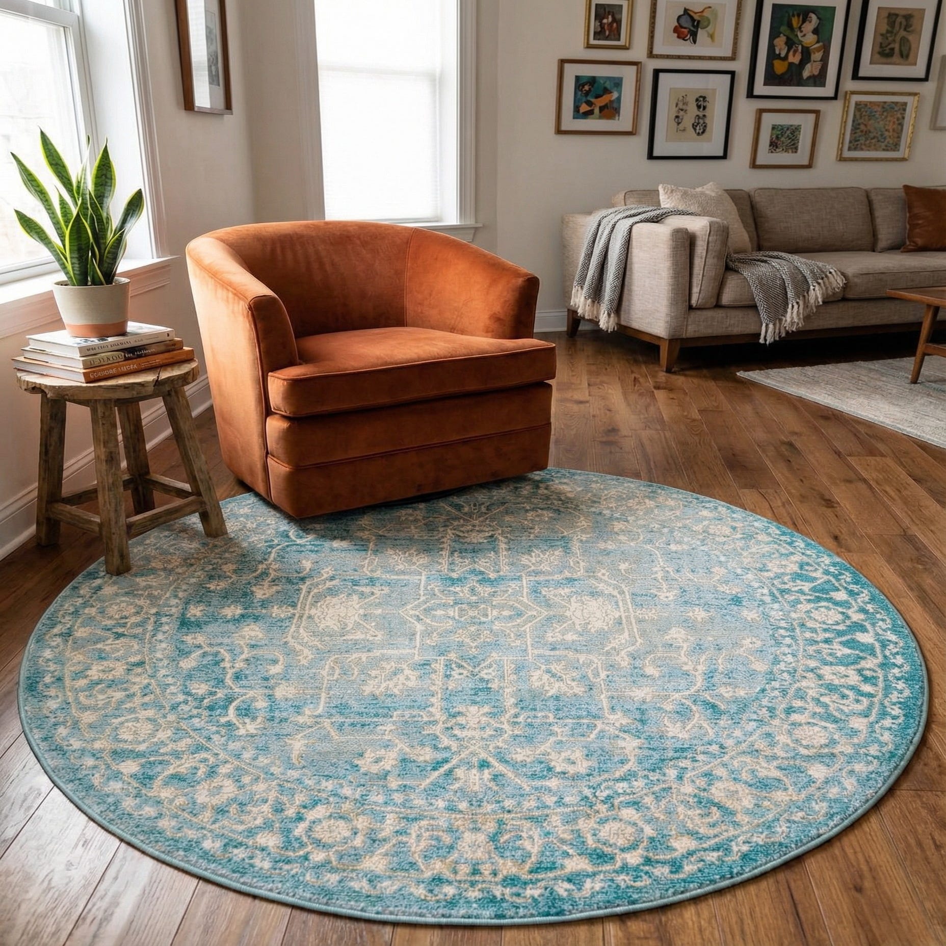 Primary color is Light Blue. Colors in this rug include: Light Blue, Ivory.