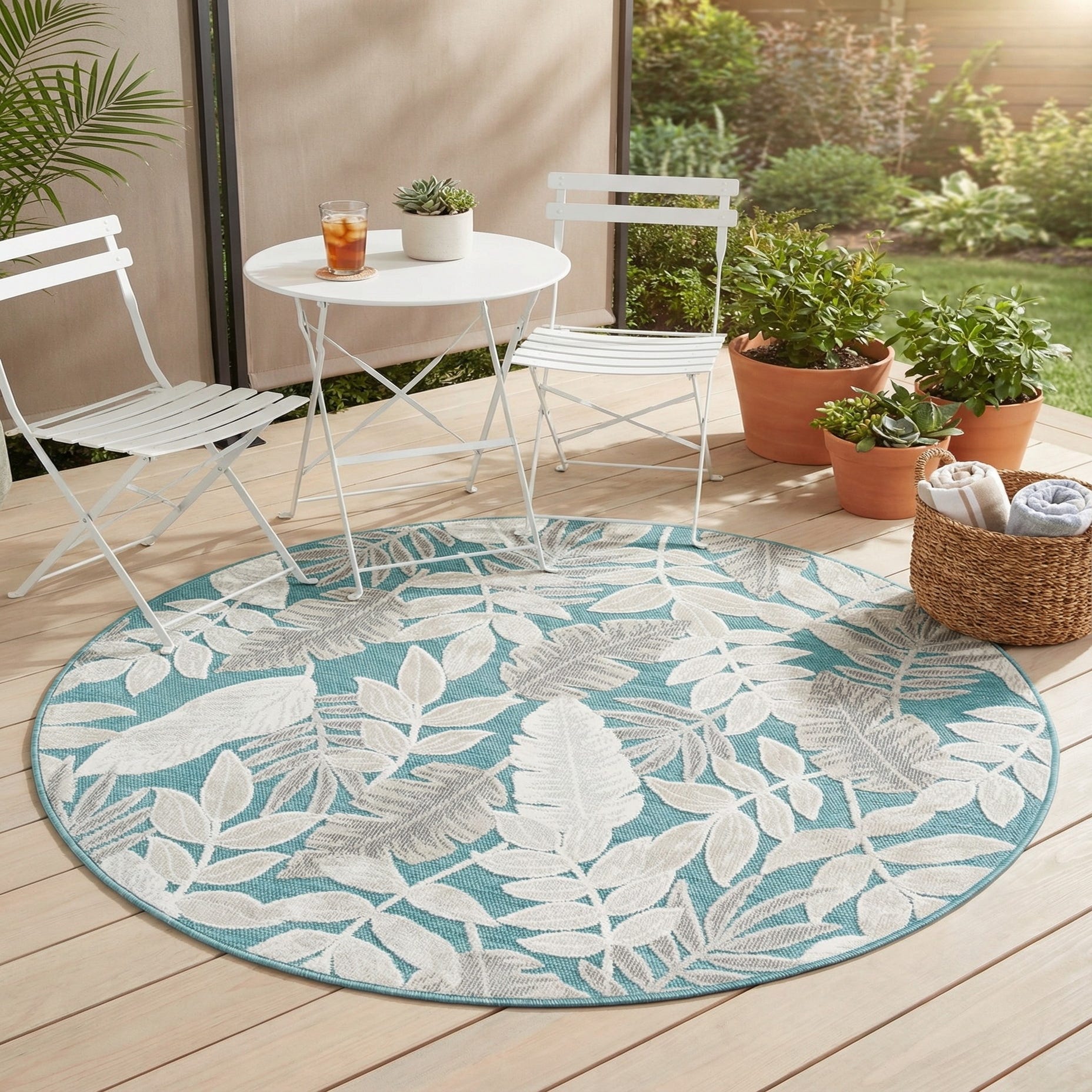 Detail image of 4' 5 x 4' 5  Washable Botanical Indoor / Outdoor Round Rug