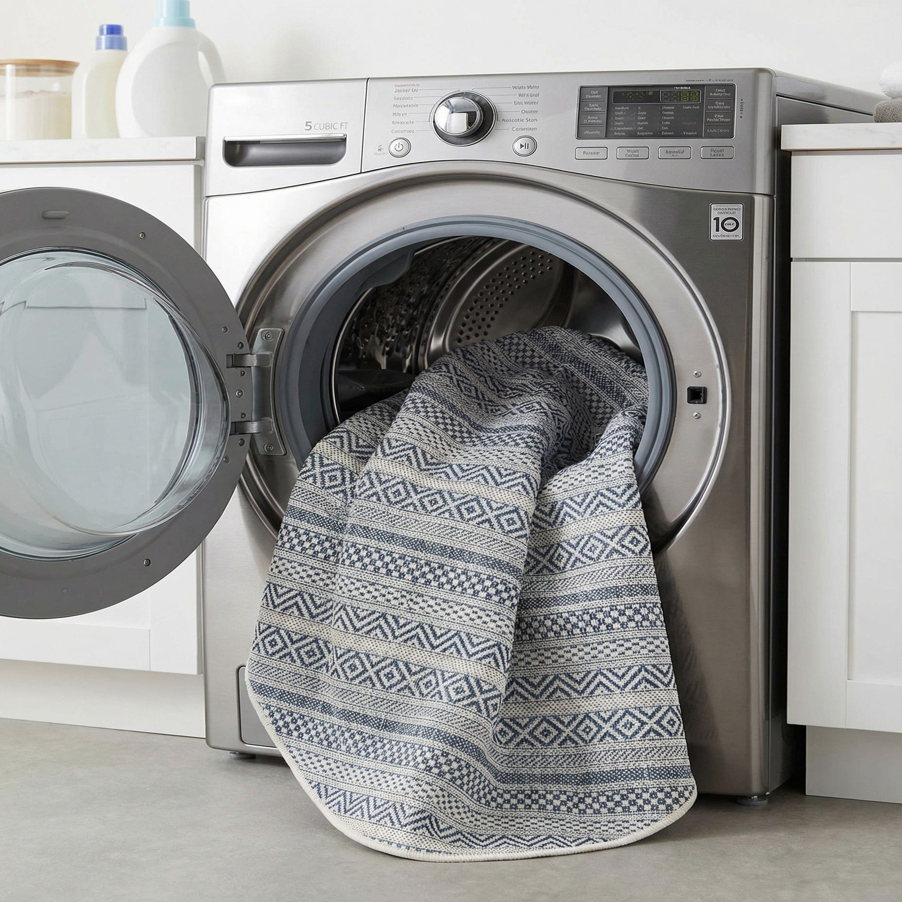 4' x 4' Washable Striped Indoor / Outdoor Round Rug