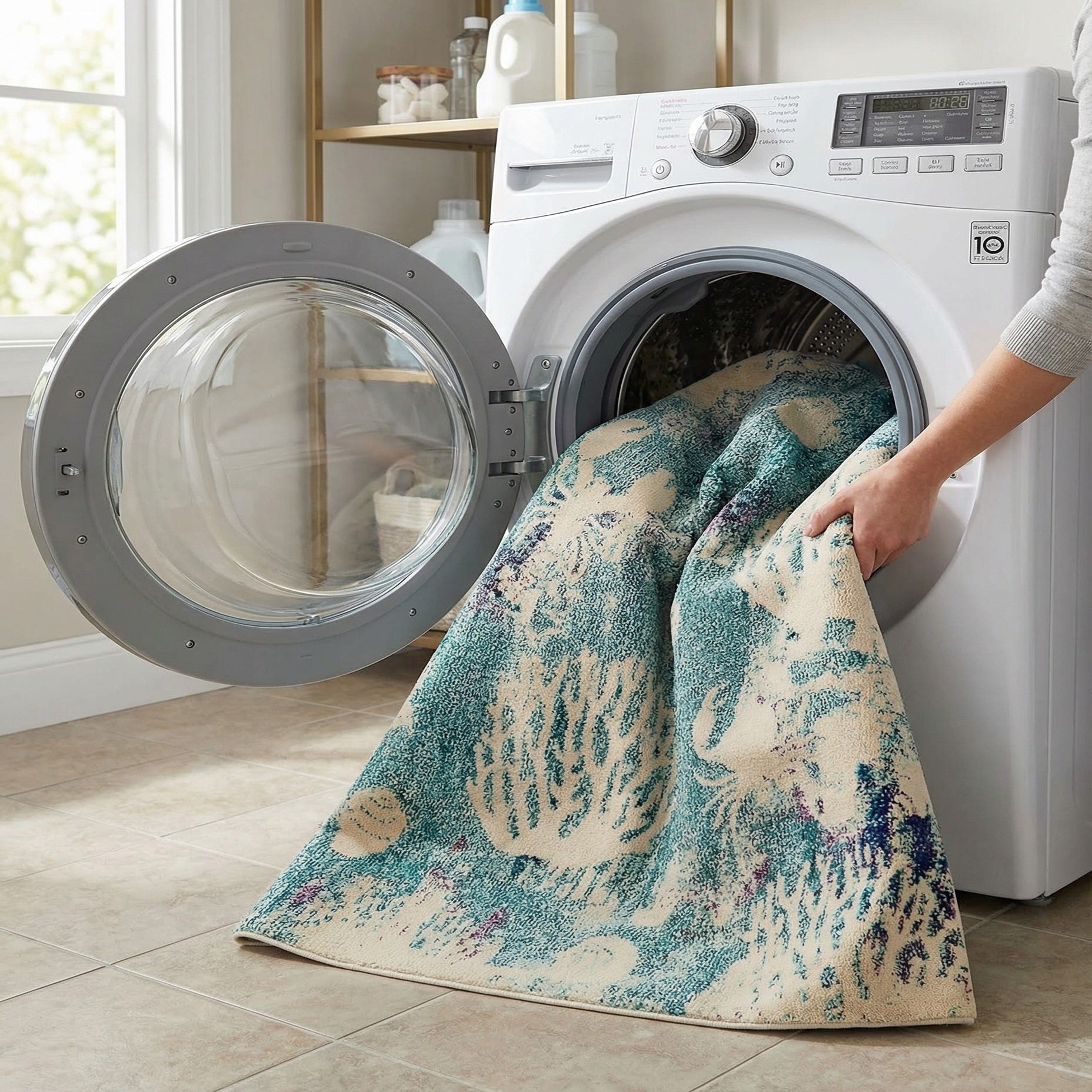 Primary color is Light Blue. Colors in this rug include: Light Blue, Beige, Navy Blue, Red.
