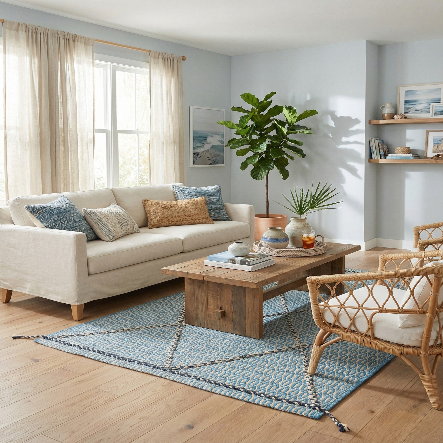 Primary color is Light Blue. Colors in this rug include: Light Blue, Ivory, Navy Blue.