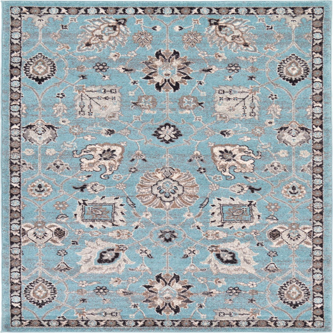Primary color is Light Blue. Colors in this rug include: Light Blue, Black, Gray, Ivory, Silver.