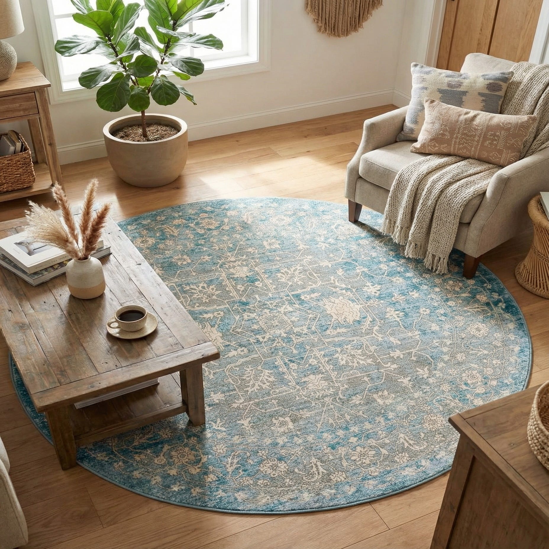 5' x 5' New Vintage Round Rug