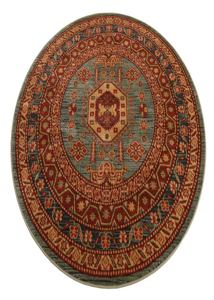 Primary color is Light Blue. Colors in this rug include: Light Blue, Blue, Red, Light Brown, Light Green.