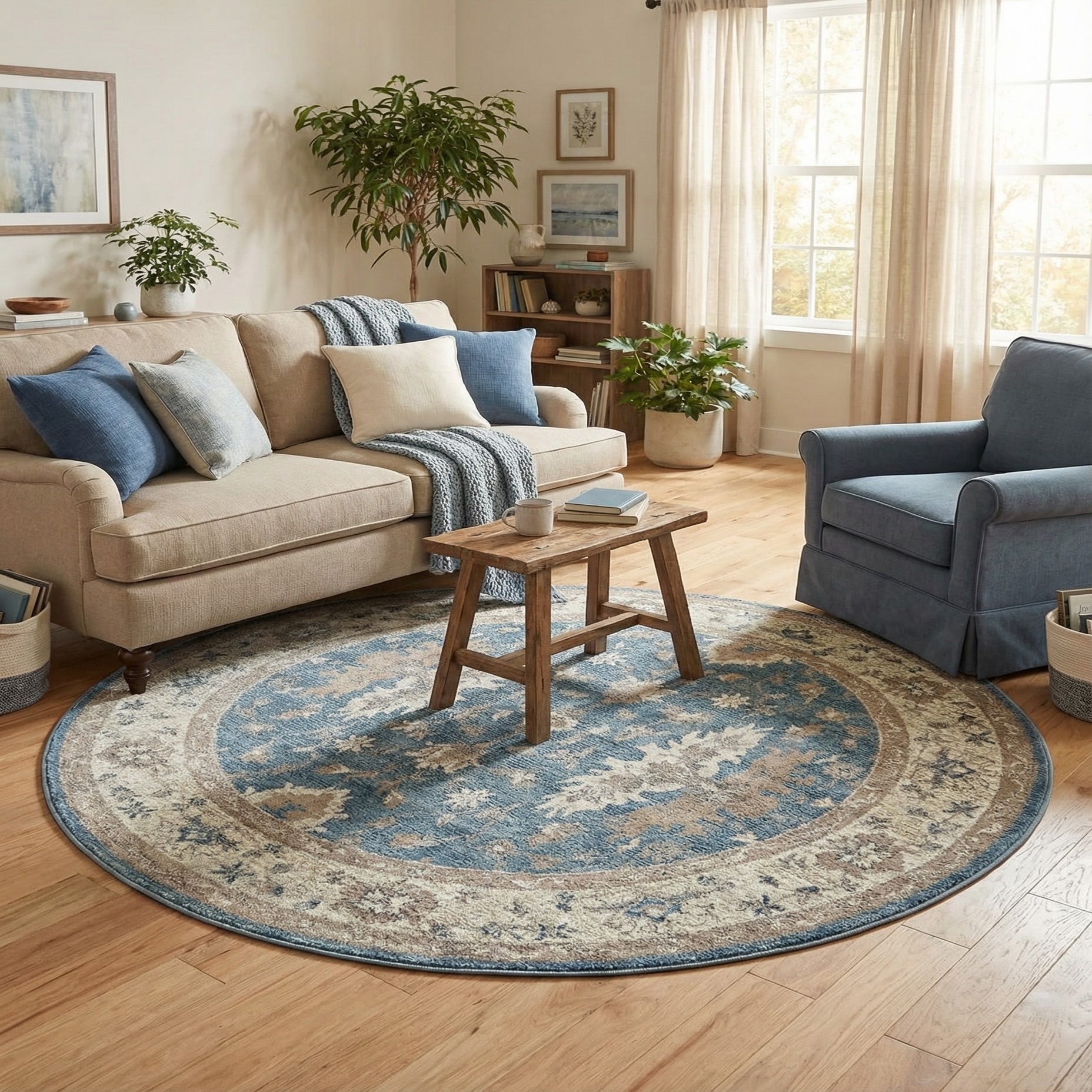 Primary color is Light Blue. Colors in this rug include: Light Blue, Gray, Ivory.
