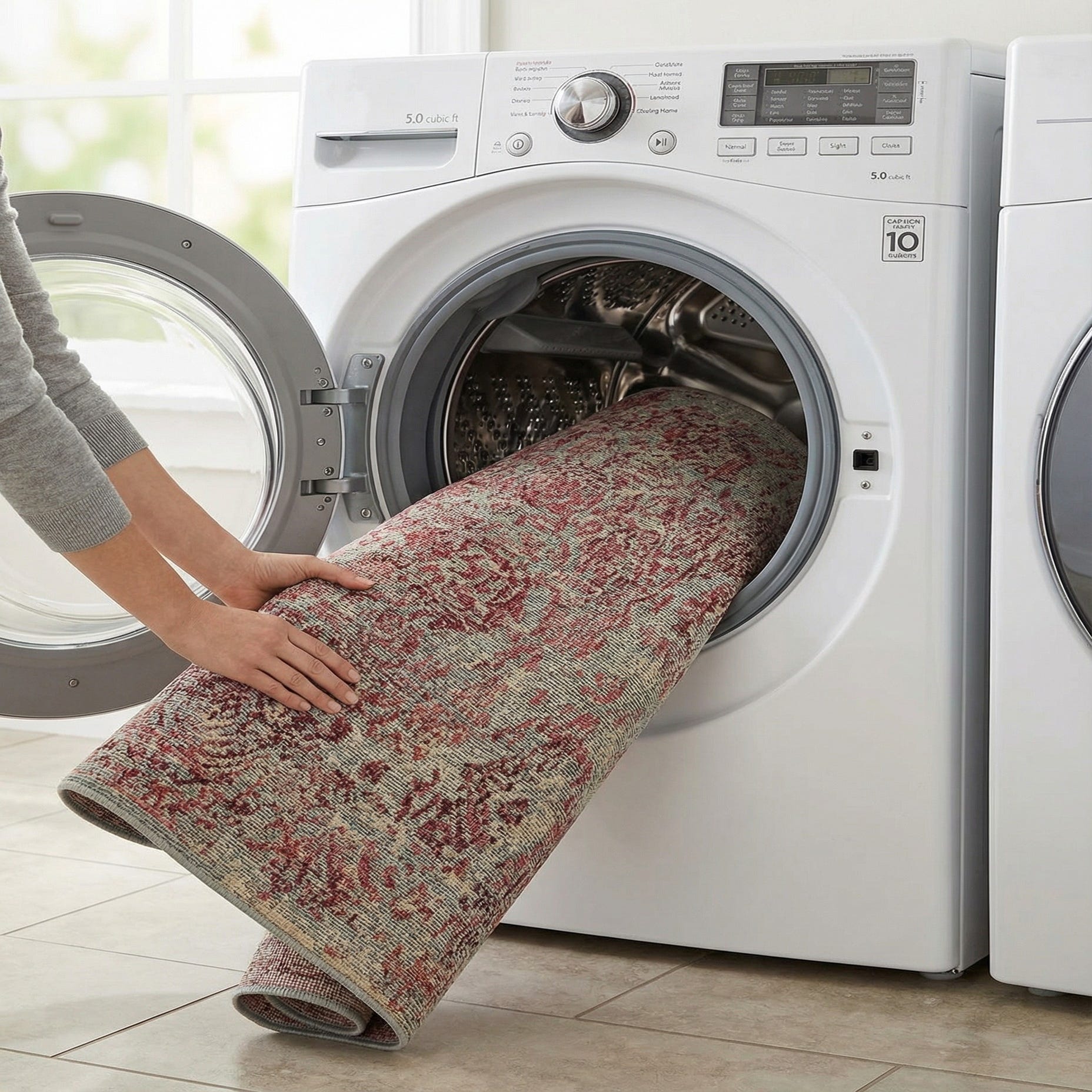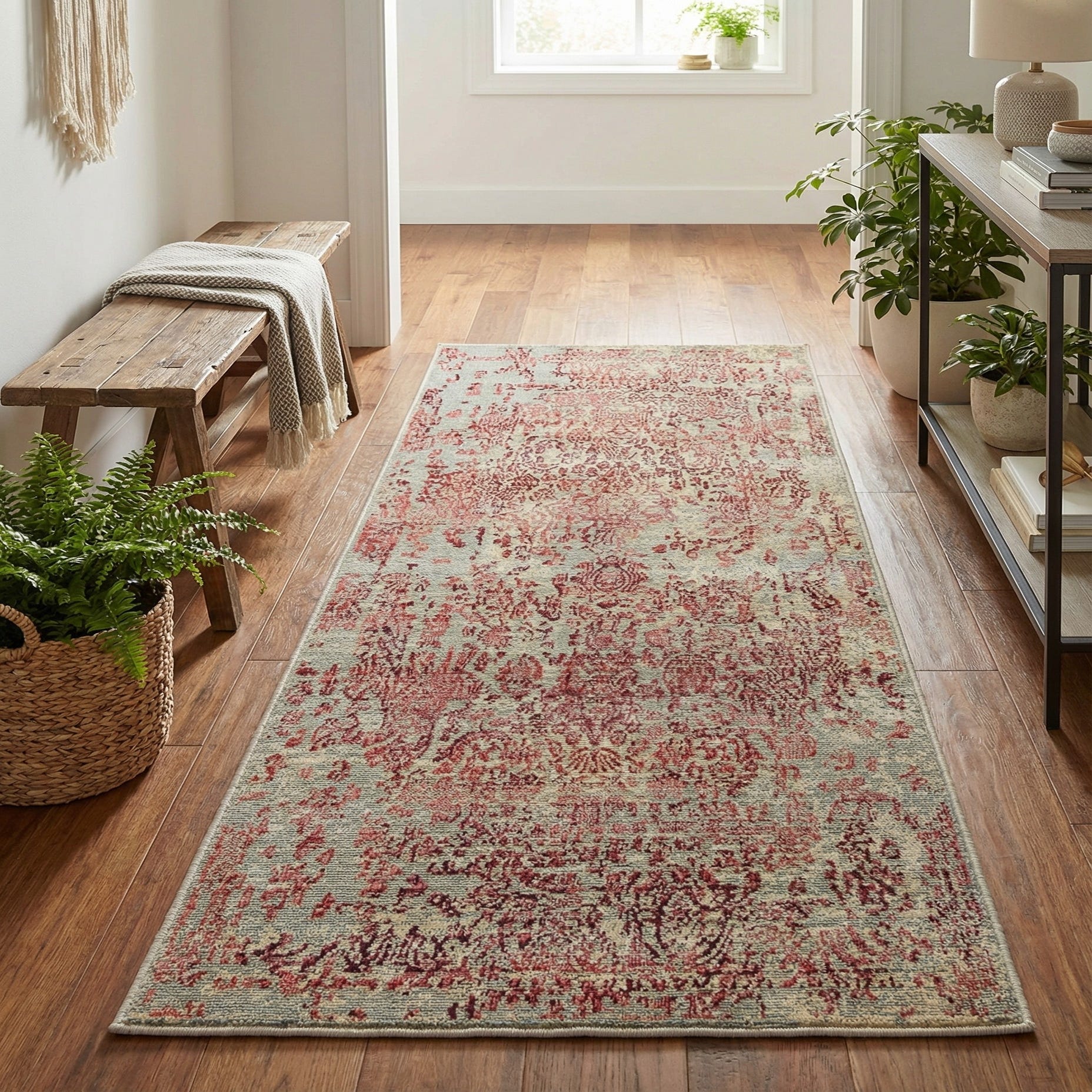 2' 7 x 5' 3 Washable Botanical Indoor / Outdoor Runner Rug