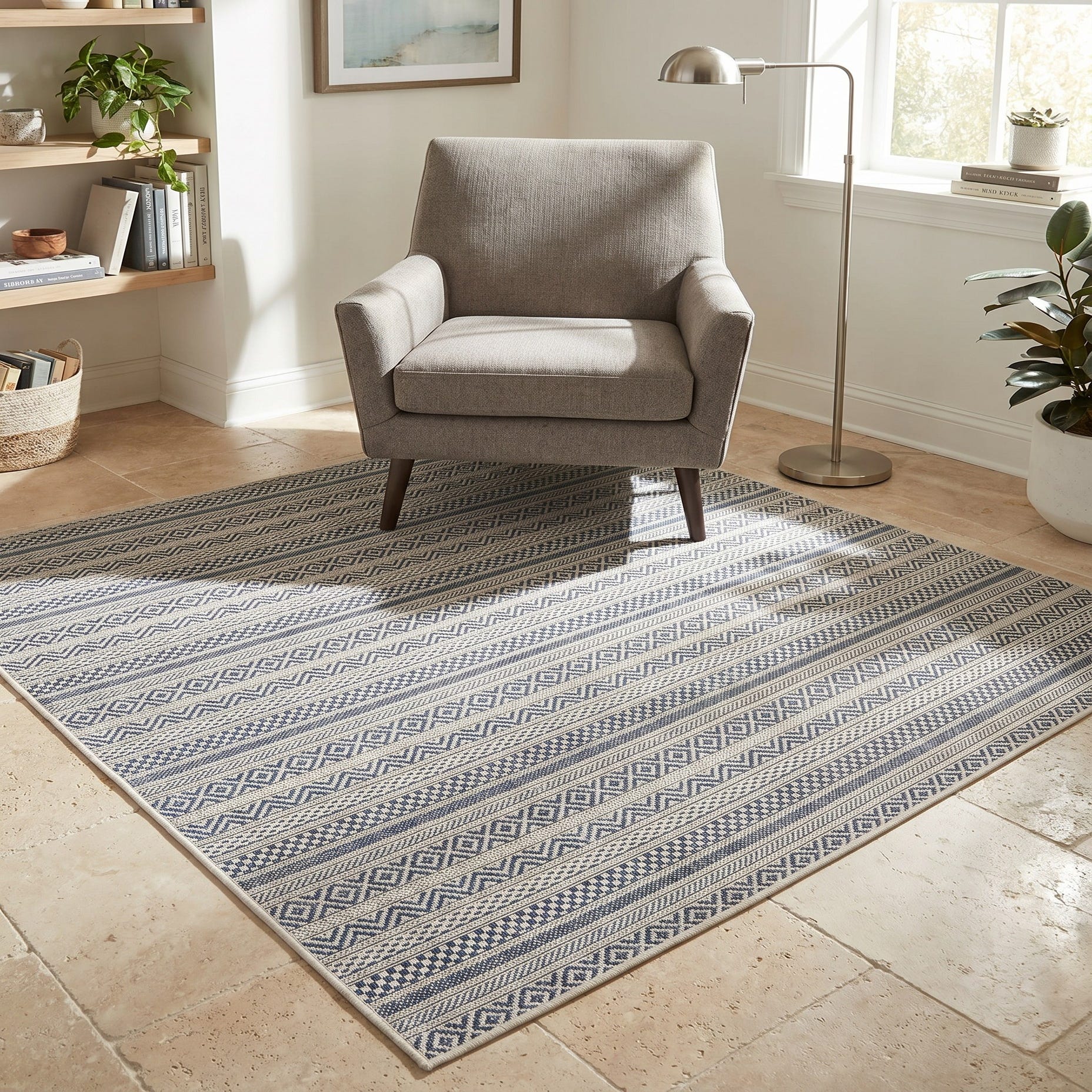 5' 3 x 5' 3 Easy-Clean Striped Indoor / Outdoor Square Rug