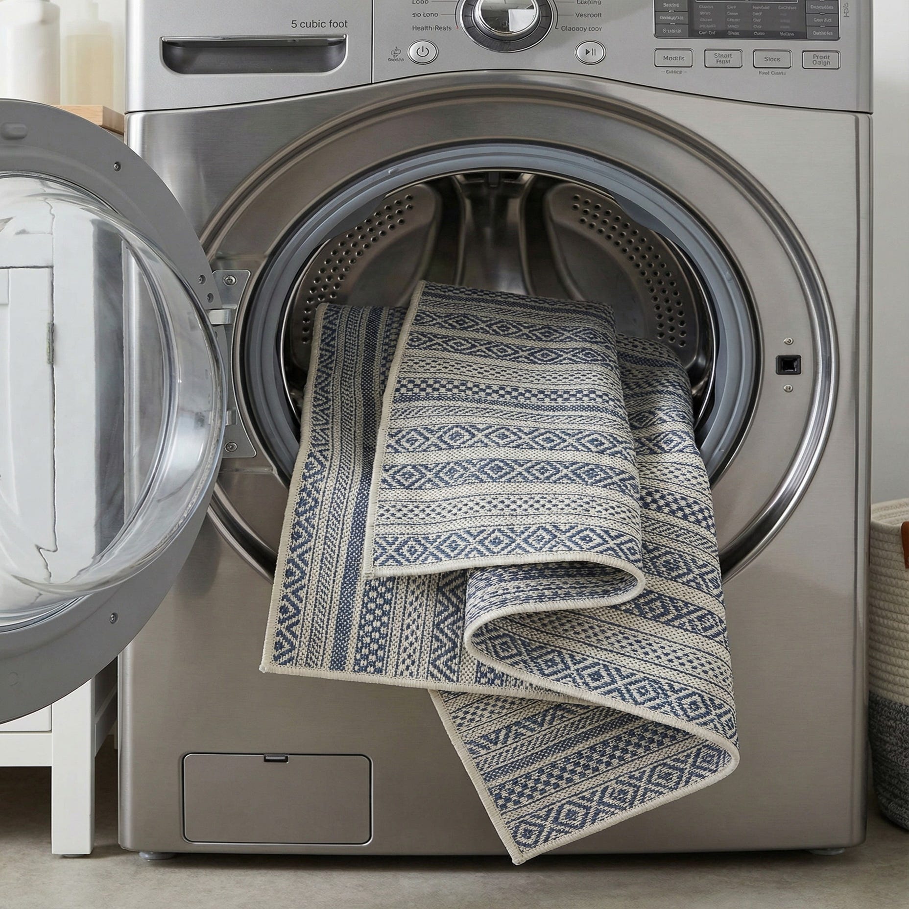 5' 3 x 5' 3 Washable Striped Indoor / Outdoor Square Rug