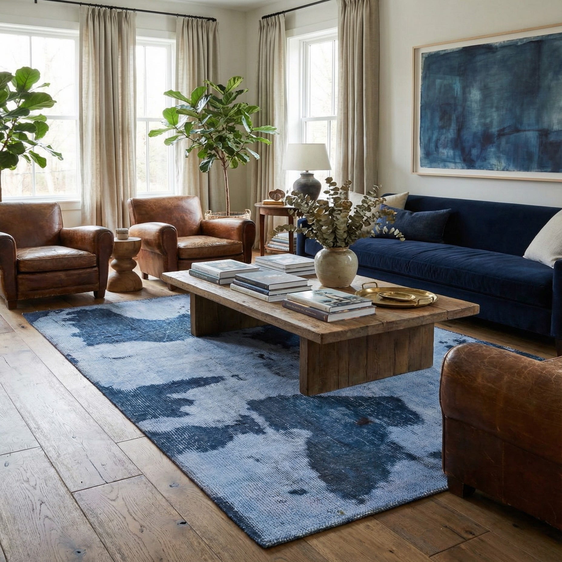 Primary color is Light Blue. Colors in this rug include: Light Blue, Blue, Navy Blue.