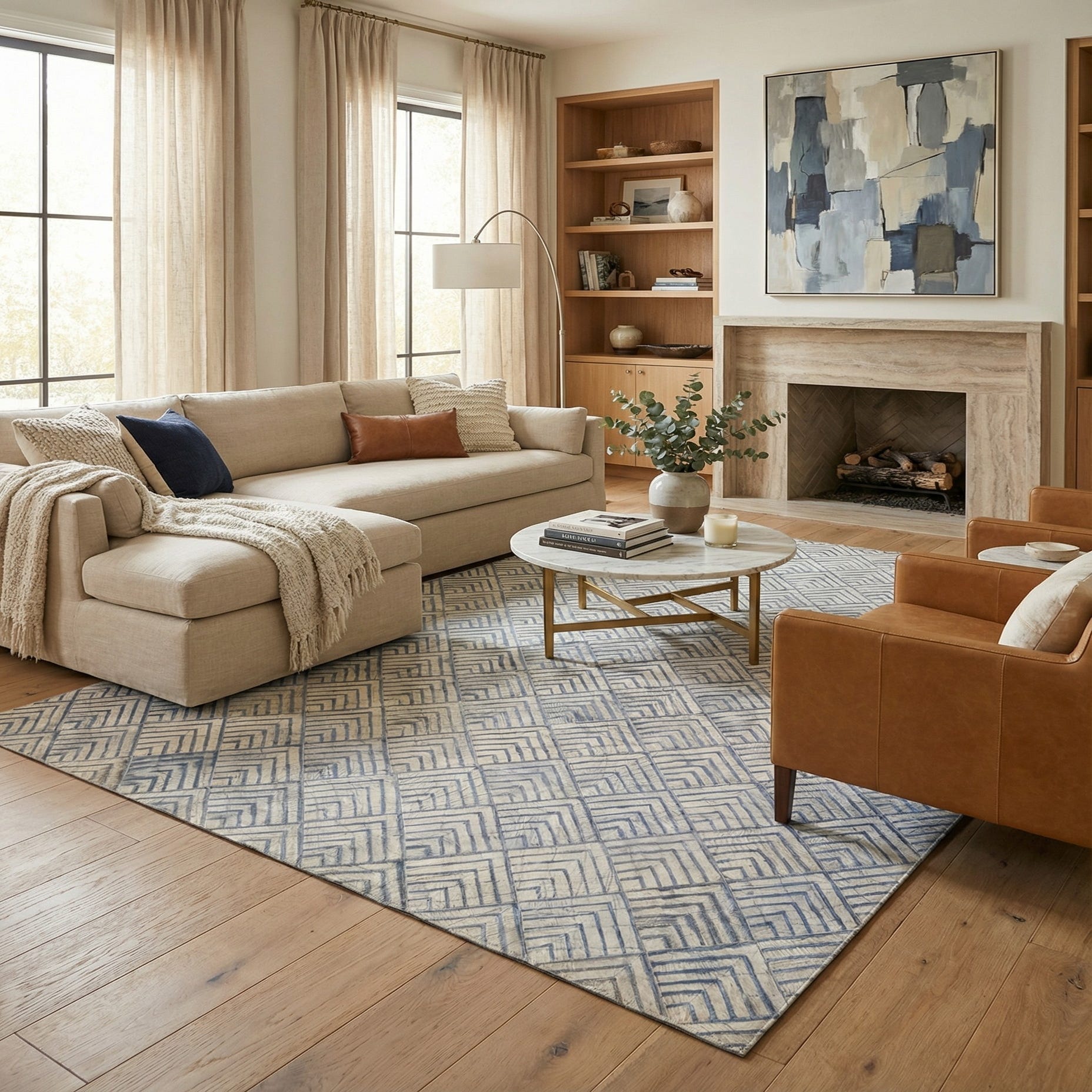 Primary color is Light Blue. Colors in this rug include: Light Blue, Beige, Ivory.
