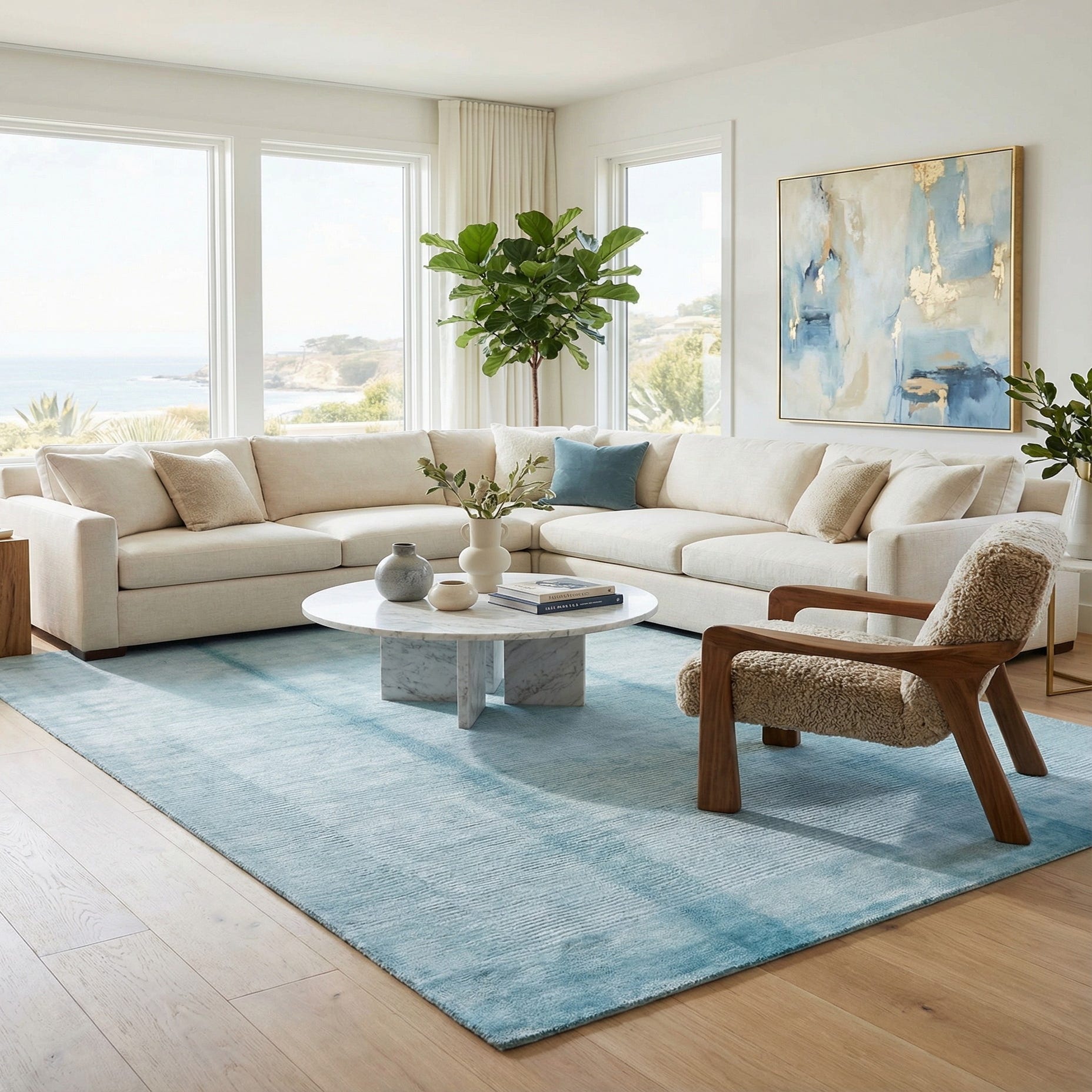 Primary color is Light Blue. Colors in this rug include: Light Blue, Teal.