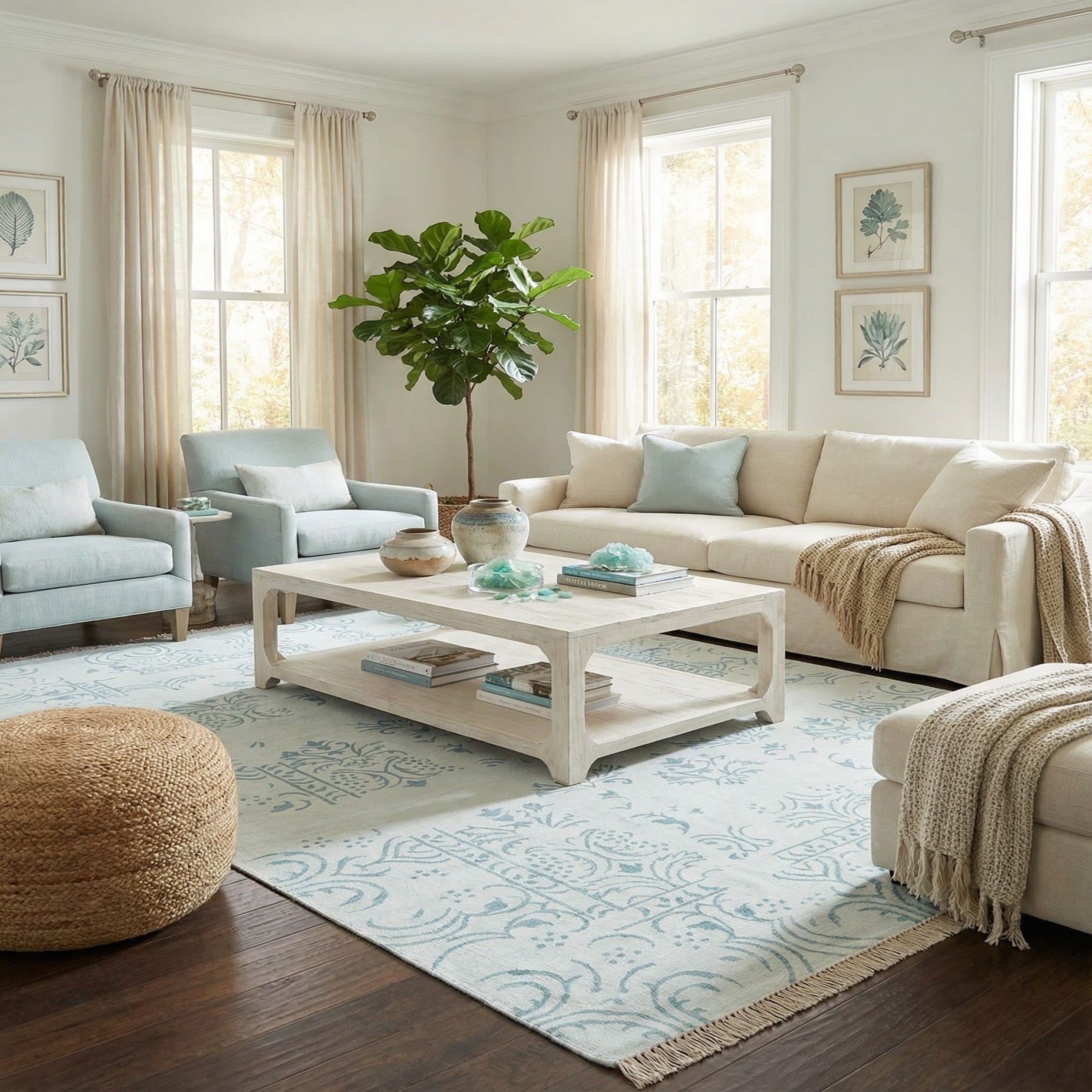 Primary color is Light Blue. Colors in this rug include: Light Blue, Blue.