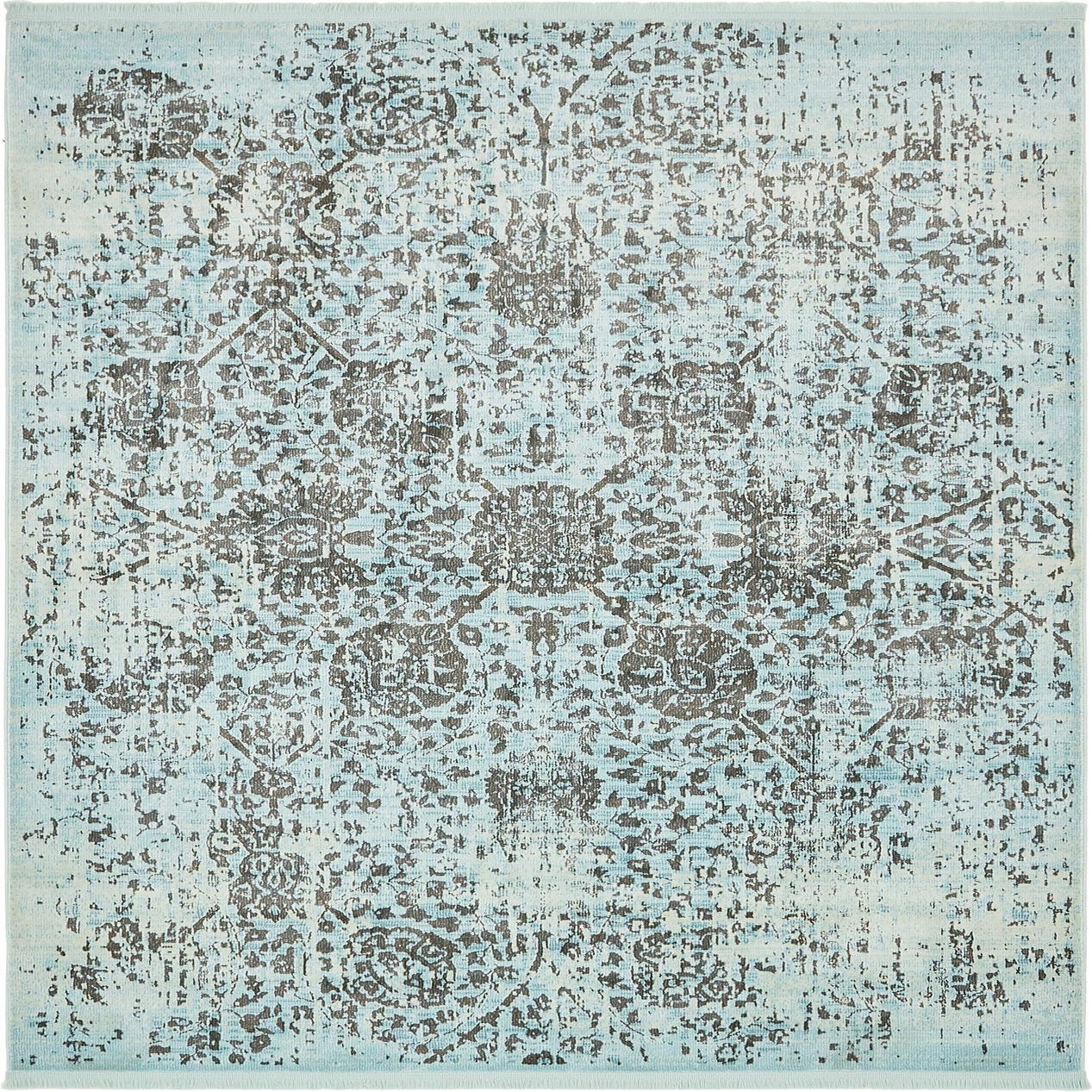 Primary color is Light Blue. Colors in this rug include: Light Blue, Brown, Ivory, Turquoise.