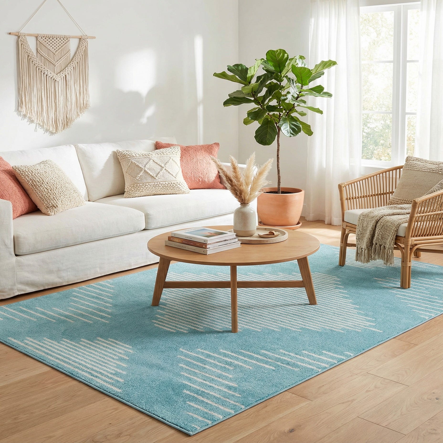 Primary color is Light Blue. Colors in this rug include: Light Blue, Ivory.