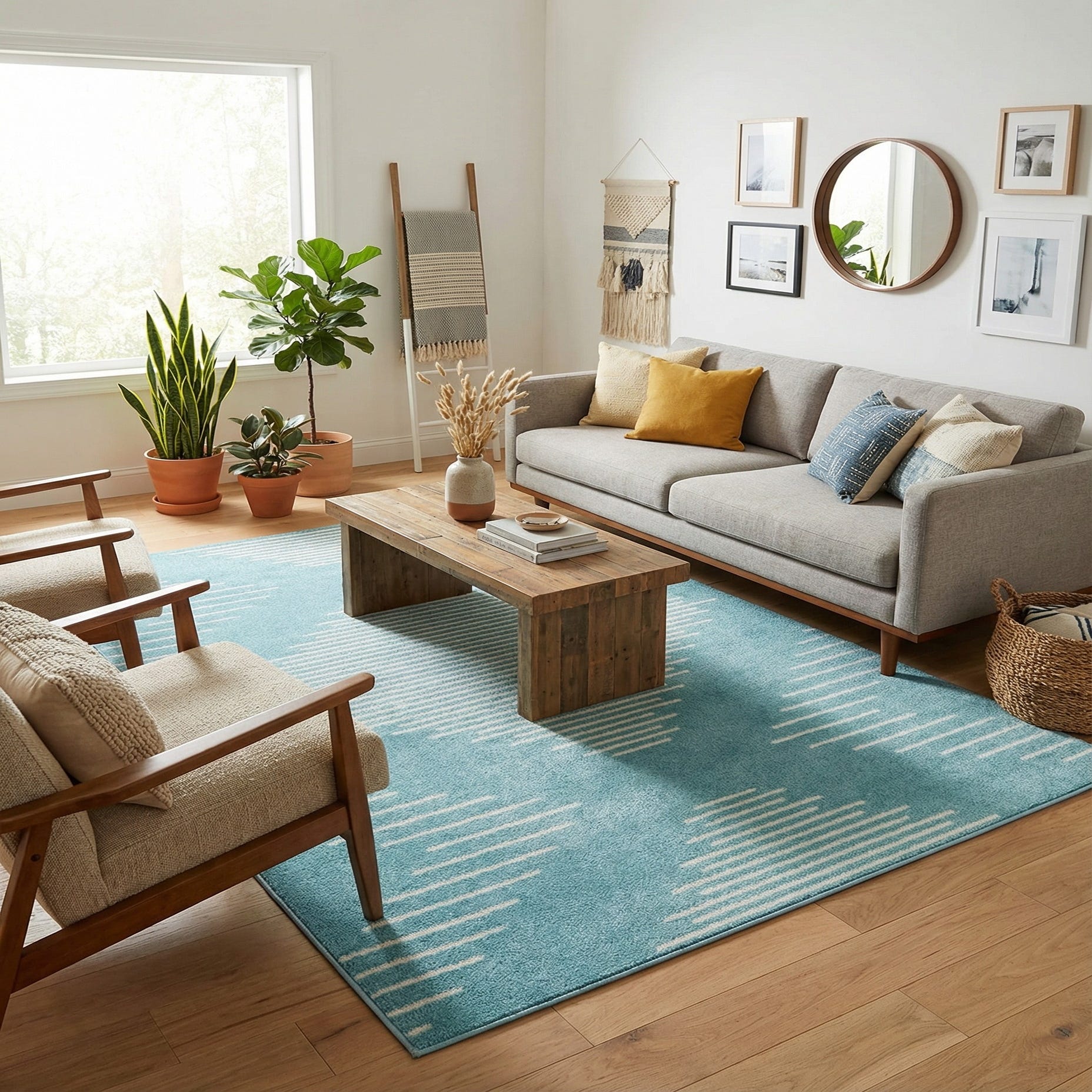 Primary color is Light Blue. Colors in this rug include: Light Blue, Ivory.