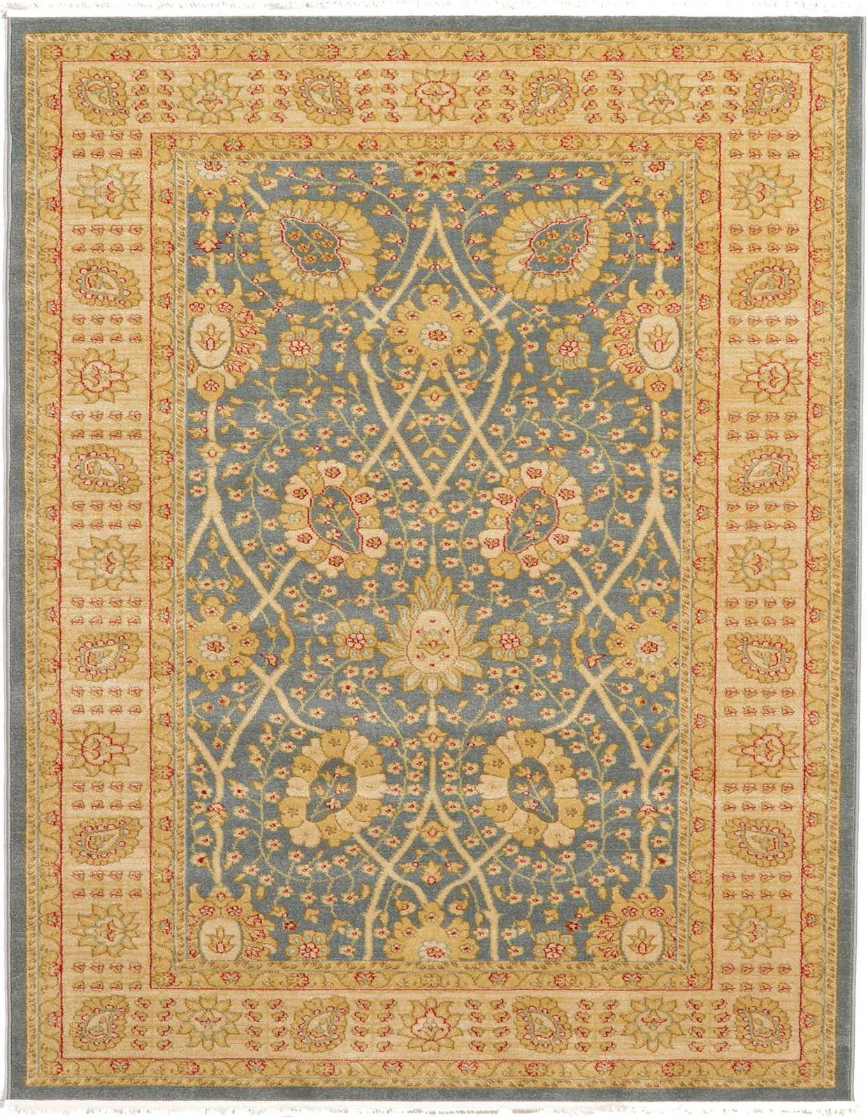Primary color is Light Blue. Colors in this rug include: Light Blue, Blue, Beige, Cream, Light Brown, Light Green, Red.