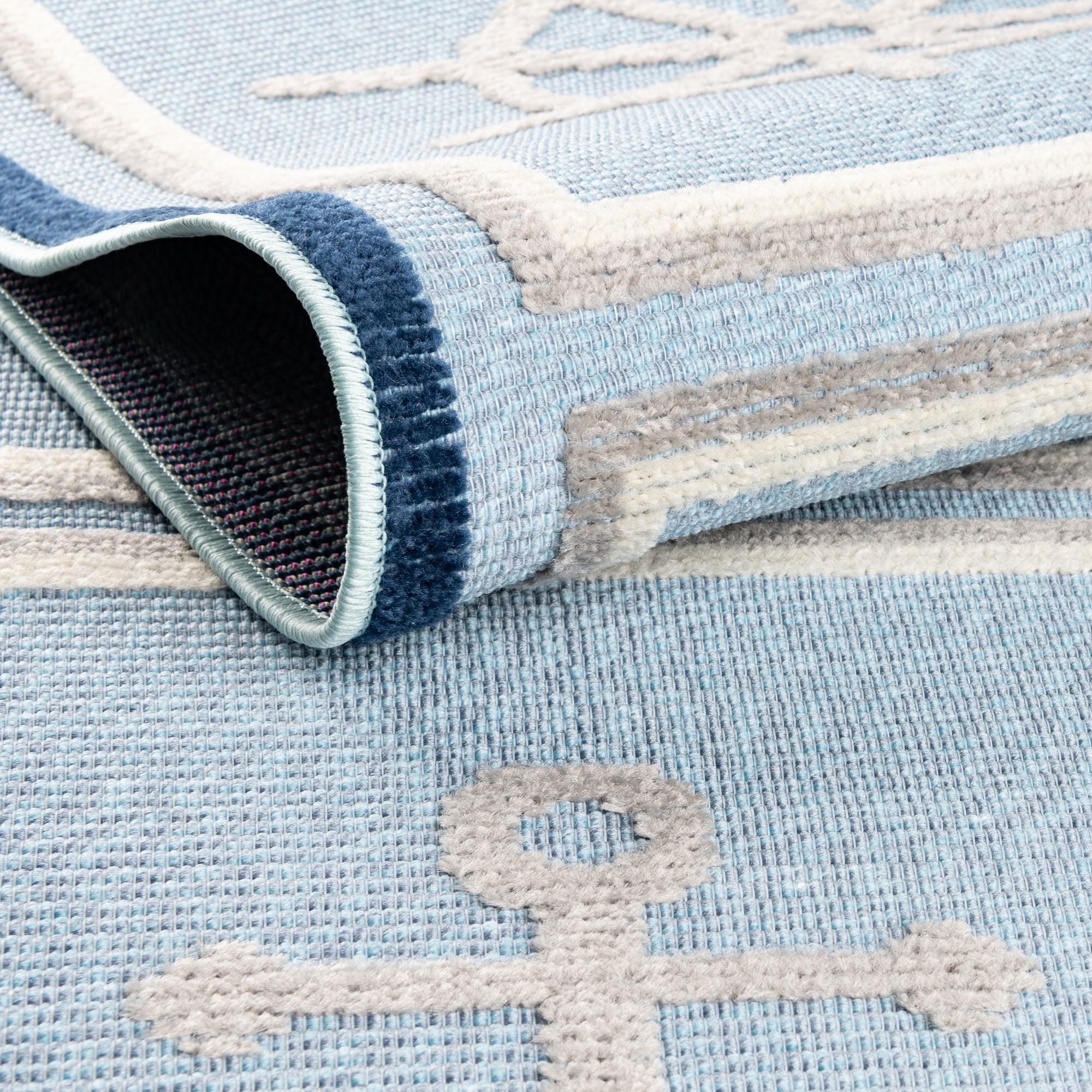Primary color is Light Blue. Colors in this rug include: Light Blue, Gray, Ivory, Navy Blue, Orange, Pink, Yellow, Light Green.