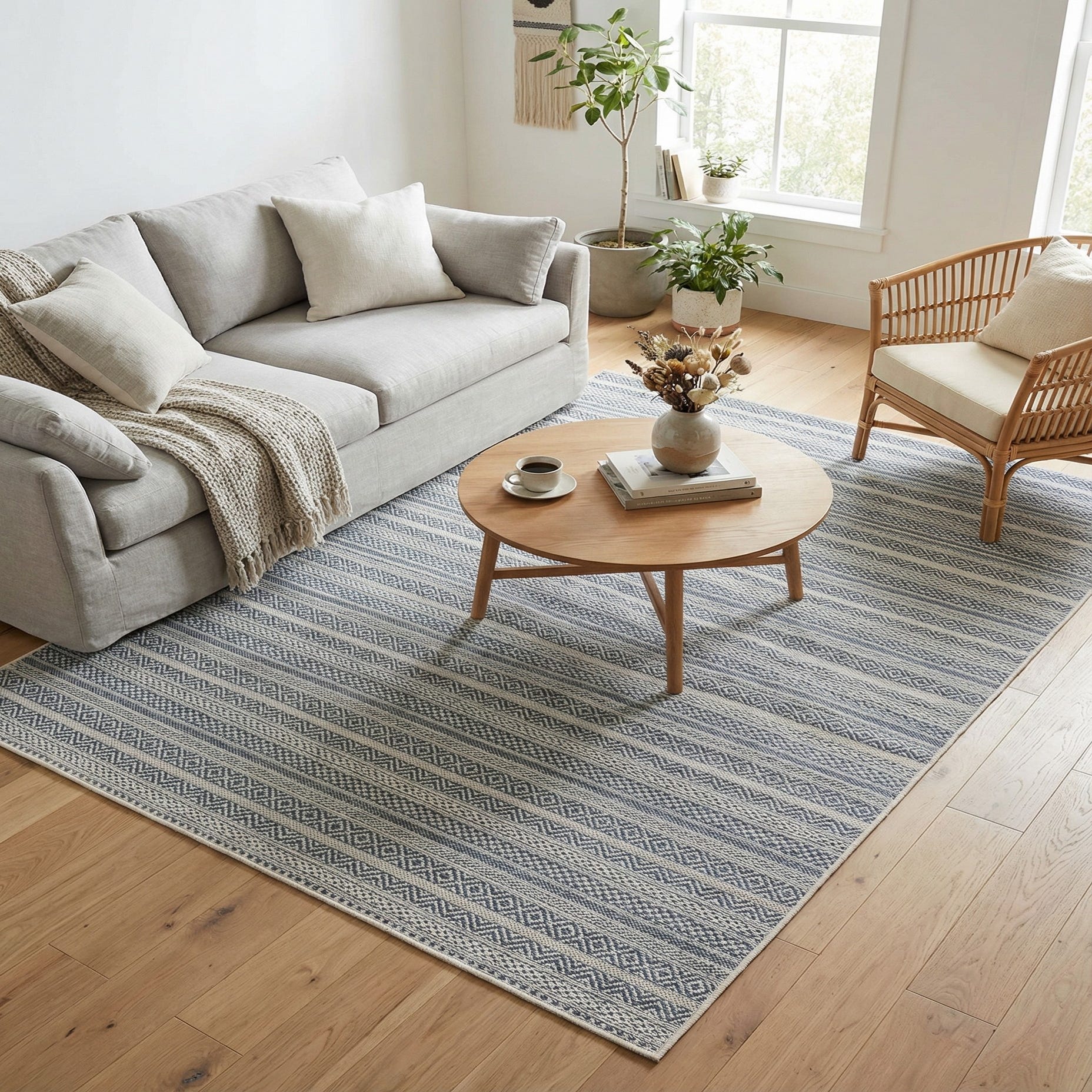 5' 3 x 8' Washable Striped Indoor / Outdoor Rug