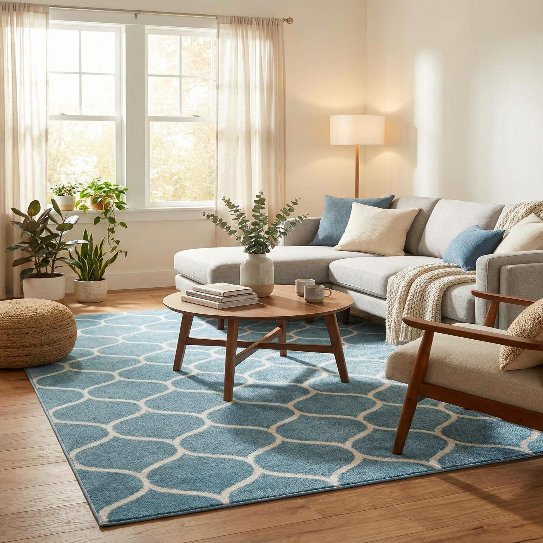 Primary color is Light Blue. Colors in this rug include: Light Blue, Ivory.