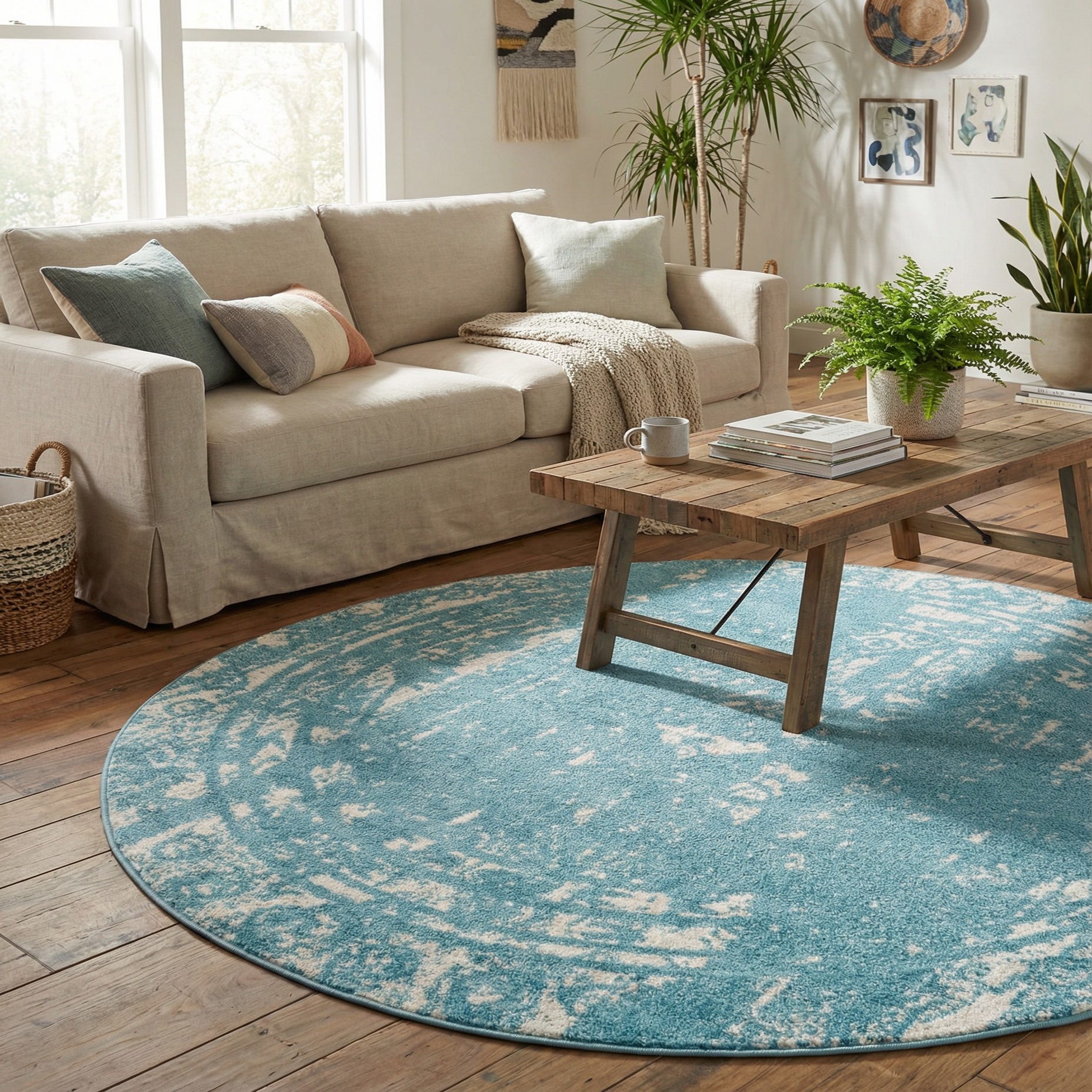 Primary color is Light Blue. Colors in this rug include: Light Blue, Ivory.