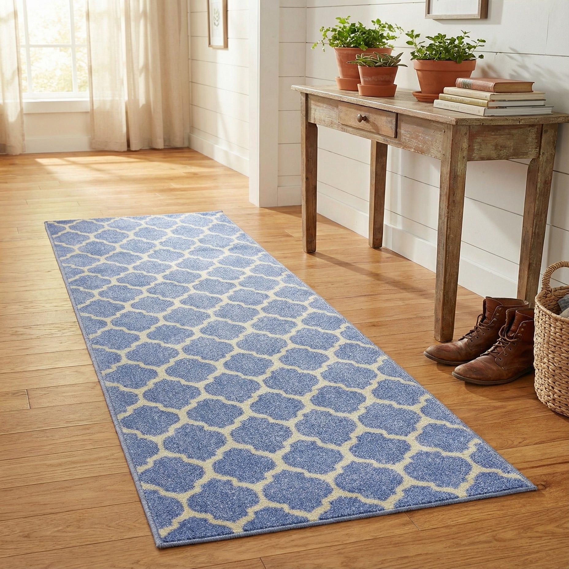 Primary color is Light Blue. Colors in this rug include: Light Blue, Beige.