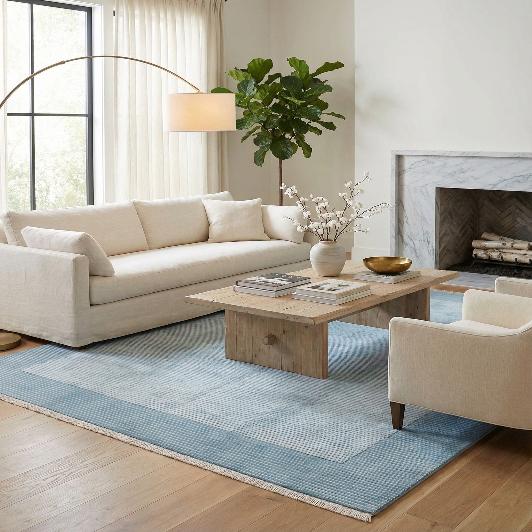 Primary color is Light Blue. Colors in this rug include: Light Blue, Teal, Blue.