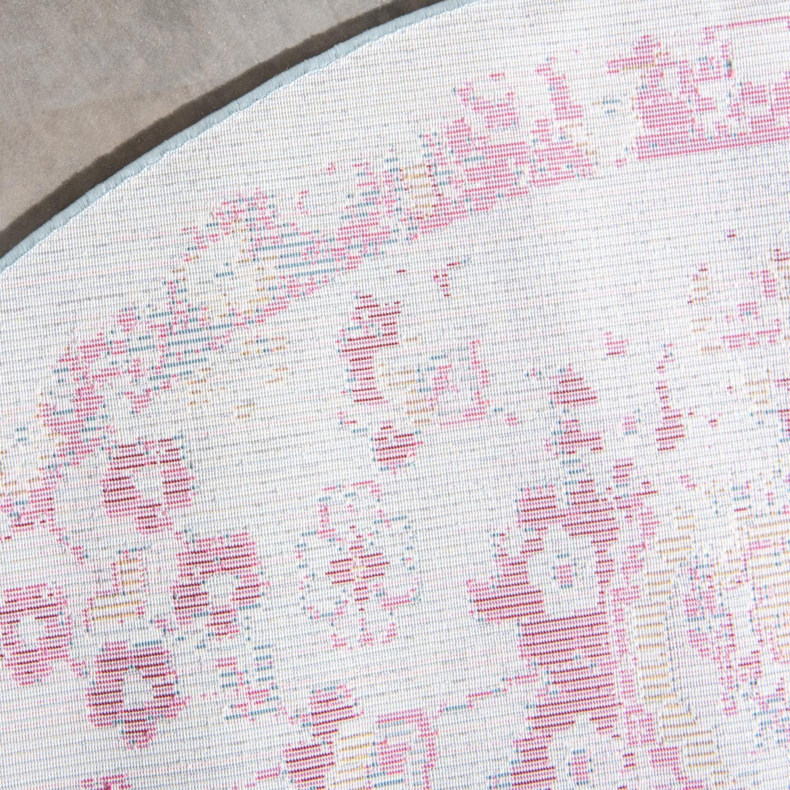 Primary color is Light Blue. Colors in this rug include: Light Blue, Gold, Gray, Ivory, Olive, Pink, Blue, Red.