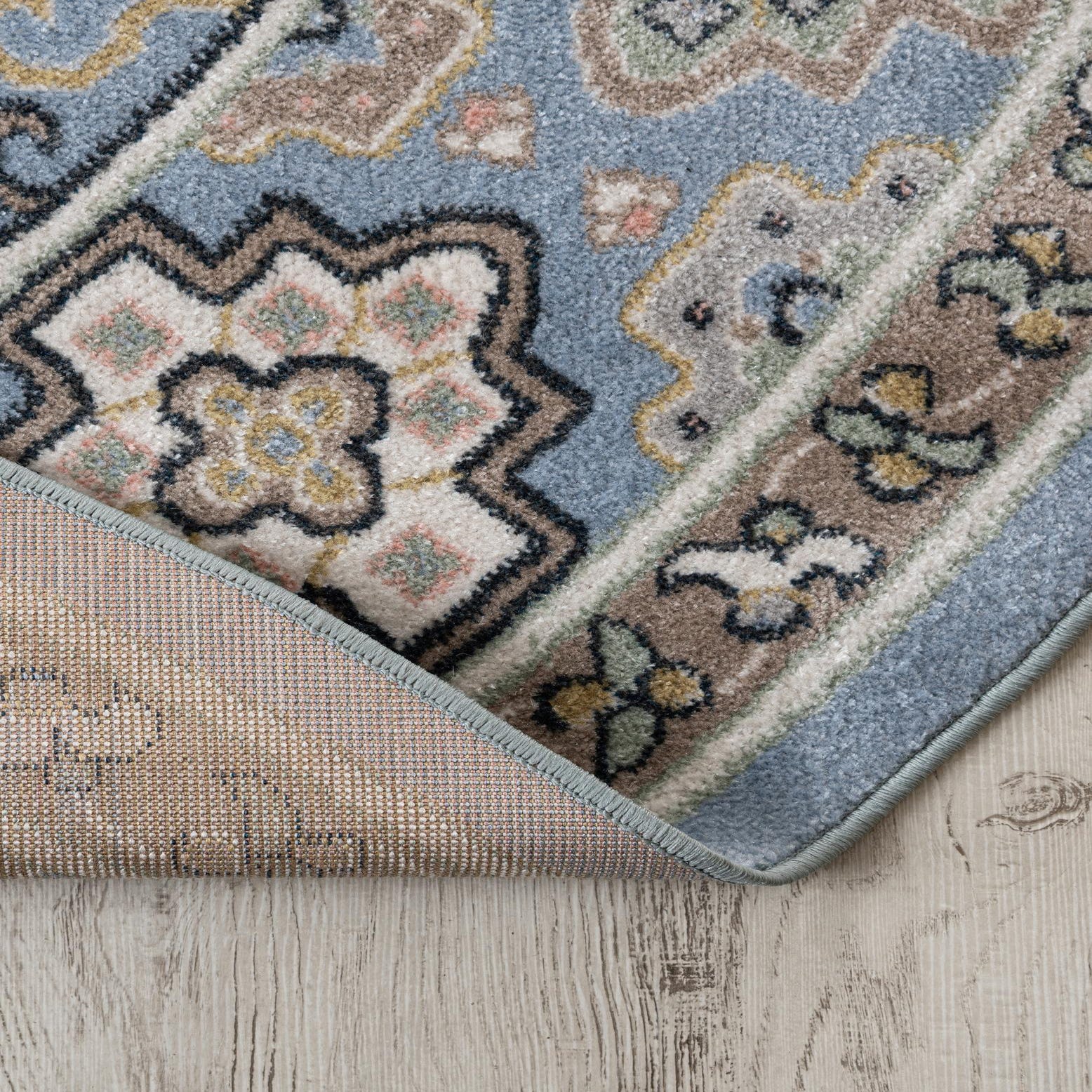 Primary color is Light Blue. Colors in this rug include: Light Blue, Beige, Black, Ivory, Pink, Green, Gray.