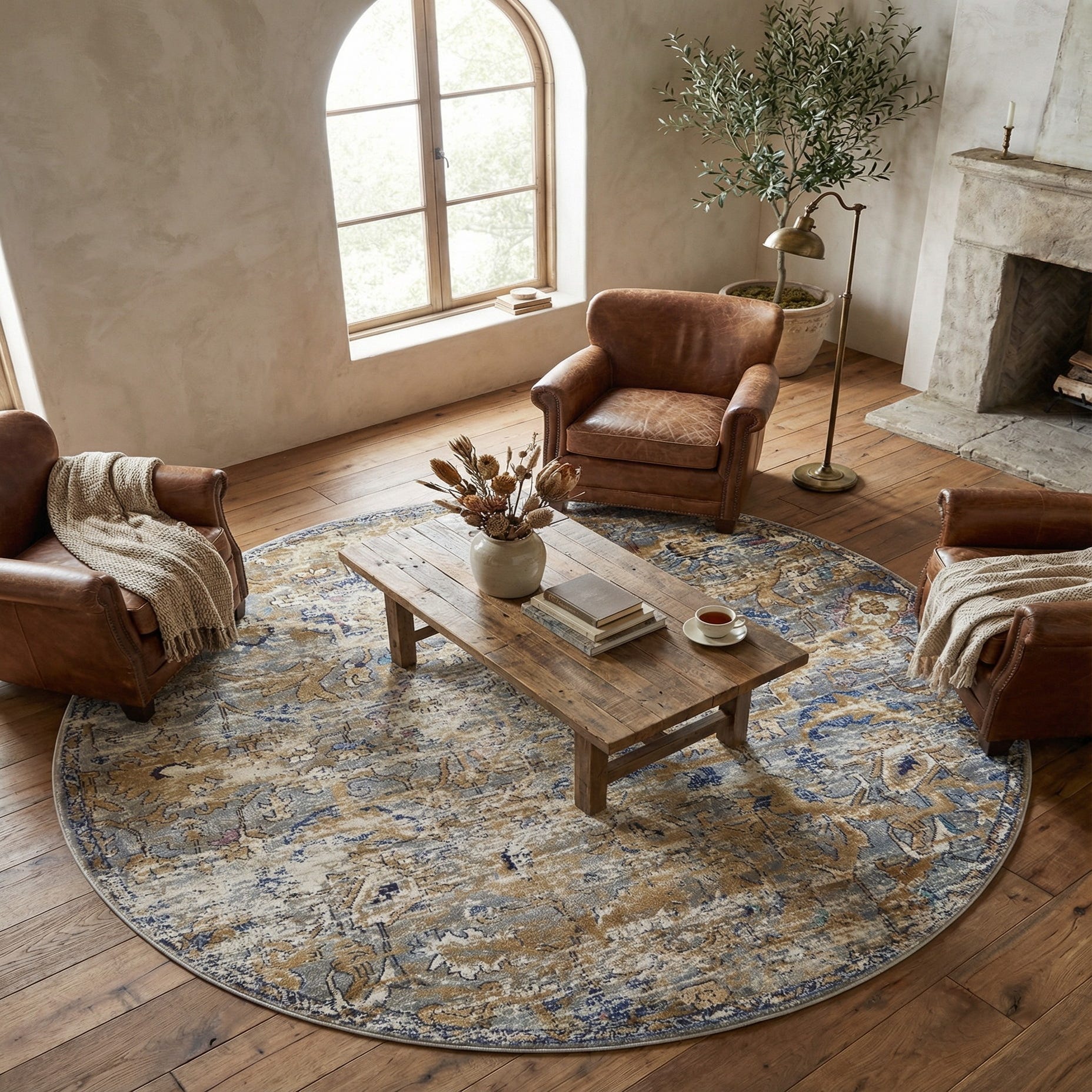 Primary color is Light Blue. Colors in this rug include: Light Blue, Tan, Ivory, Navy Blue, Brown, Green.