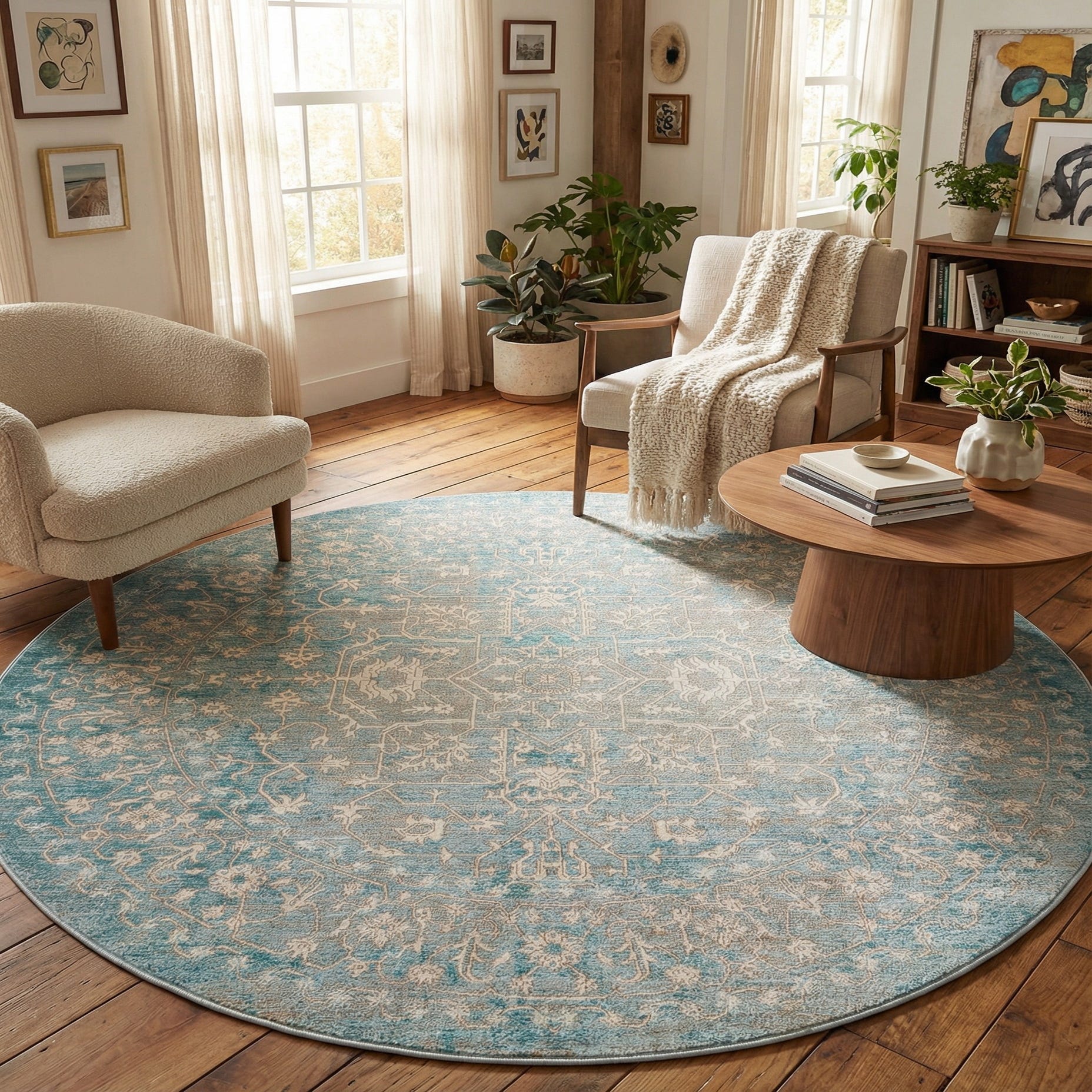Primary color is Light Blue. Colors in this rug include: Light Blue, Ivory.