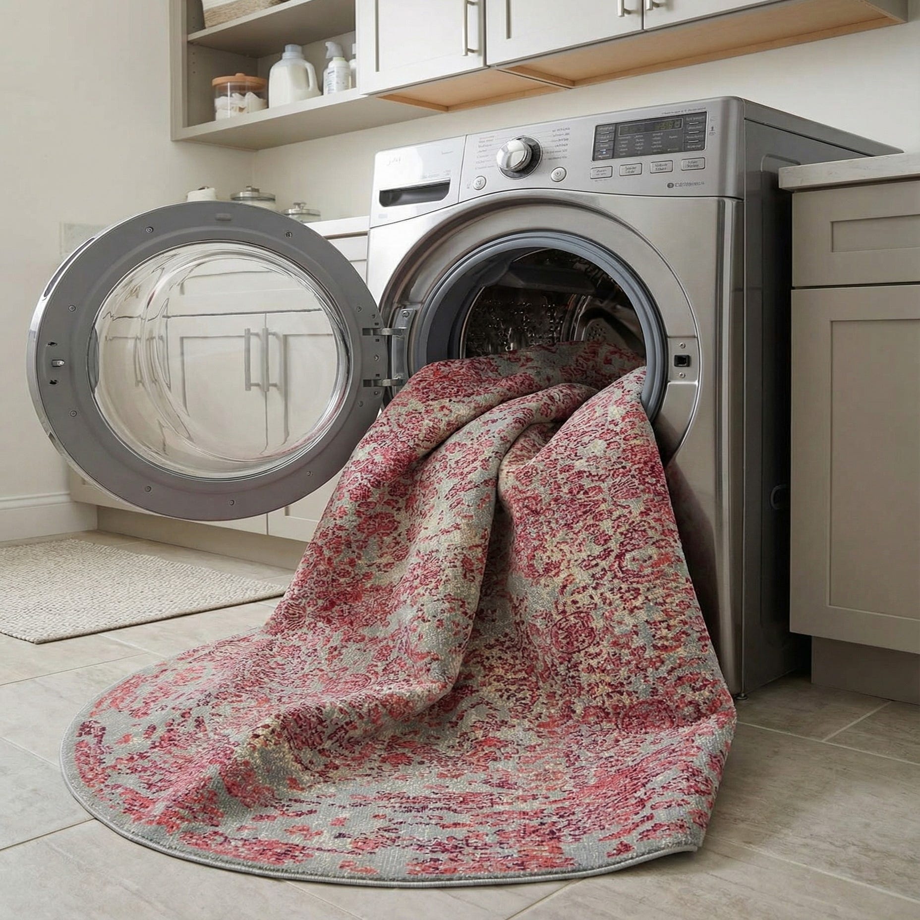 Primary image 8' x 8'  Washable Botanical Indoor / Outdoor Round Rug