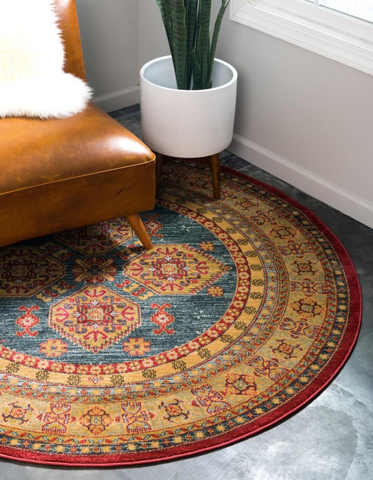 Primary color is Light Blue. Colors in this rug include: Light Blue, Light Brown, Light Green, Red, Blue.