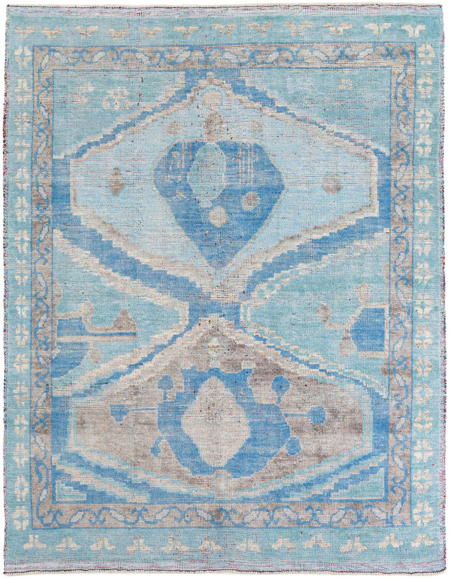 Primary color is Light Blue. Colors in this rug include: Light Blue, Blue, Brown, Ivory.