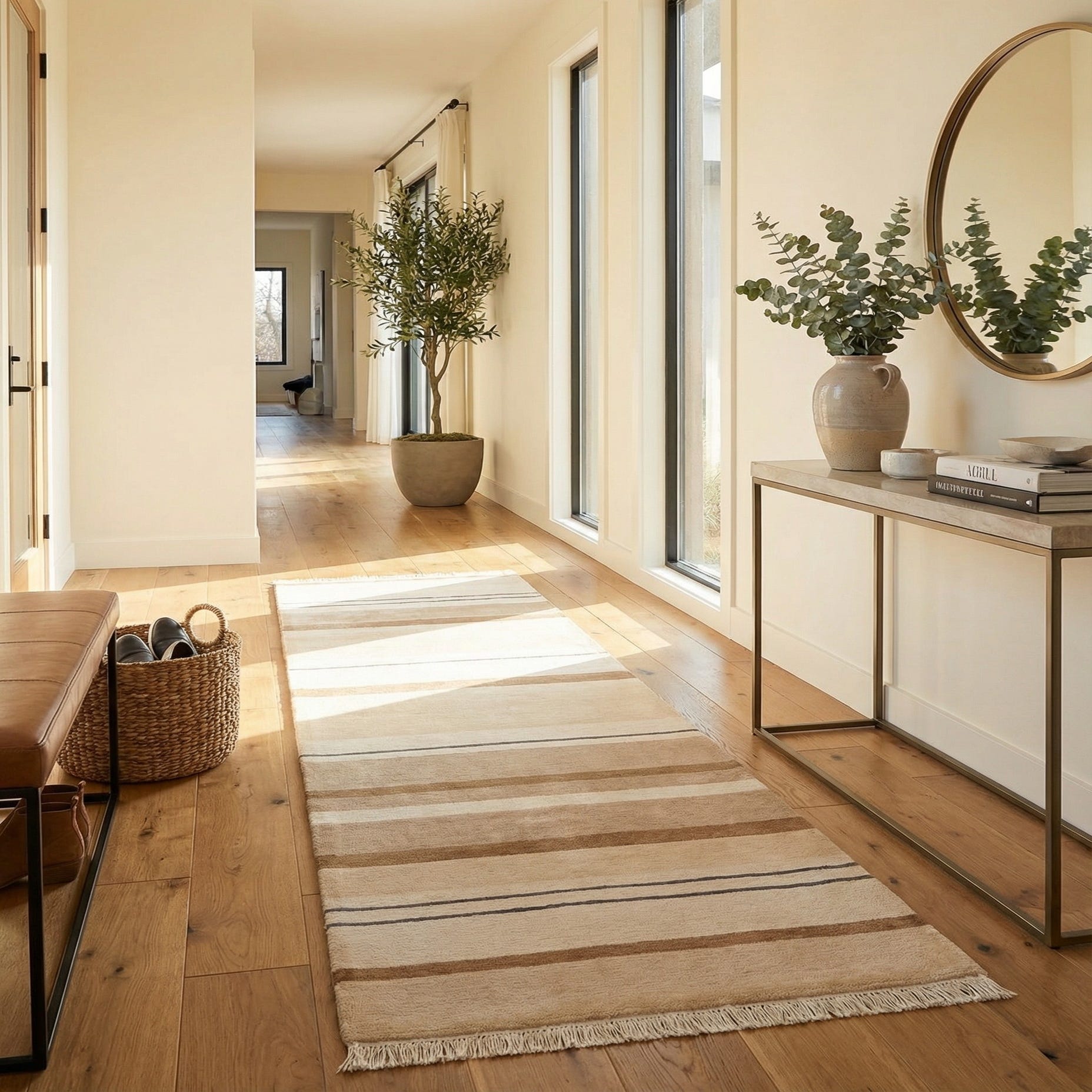 Primary color is Light Brown. Colors in this rug include: Light Brown, Beige, Brown, Black, Tan.