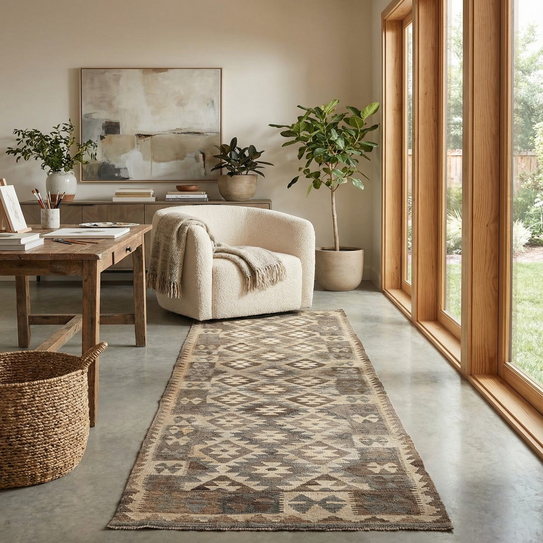 Primary image 2' 9 x 9' 10  Hand Woven Kilim Maymana Wool Runner Rug
