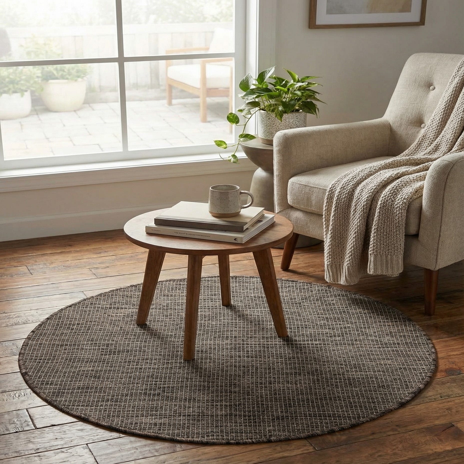 Detail image of 3' 1 x 3' 1  Washable Solid Indoor / Outdoor Round Rug