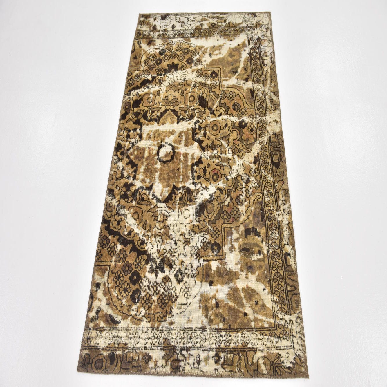 This Persian Ultra Vintage rug is an antique Persian Rug that has been washed, over-dyed, and then shaved down to a low pile. Look at the detail pictures to fully appreciate the uniqueness of this piece.